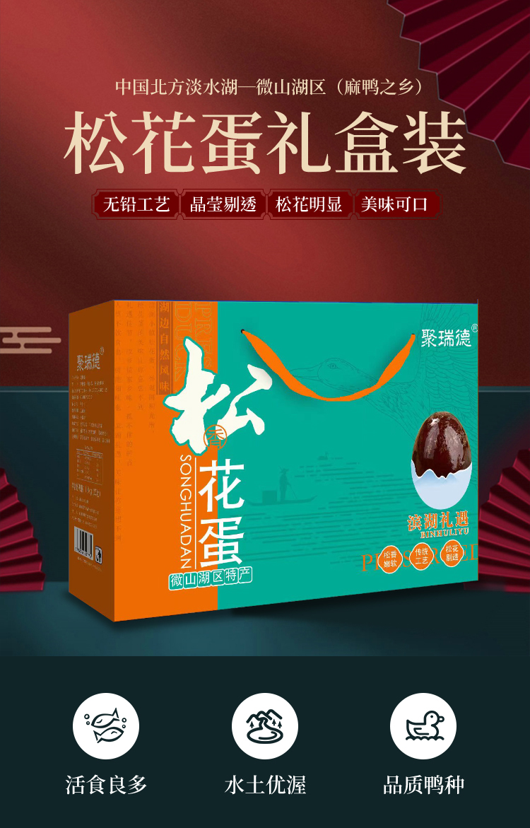 聚瑞德 微山湖区特产松花蛋无铅工艺皮蛋 滨湖礼遇松花蛋礼盒20枚 1.2kg