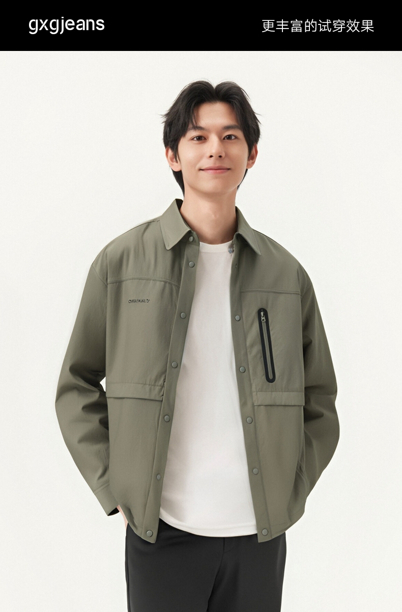 gxg.jeans男装 多色口袋设计工装户外翻领长袖衬衫 25年春热卖