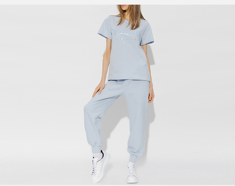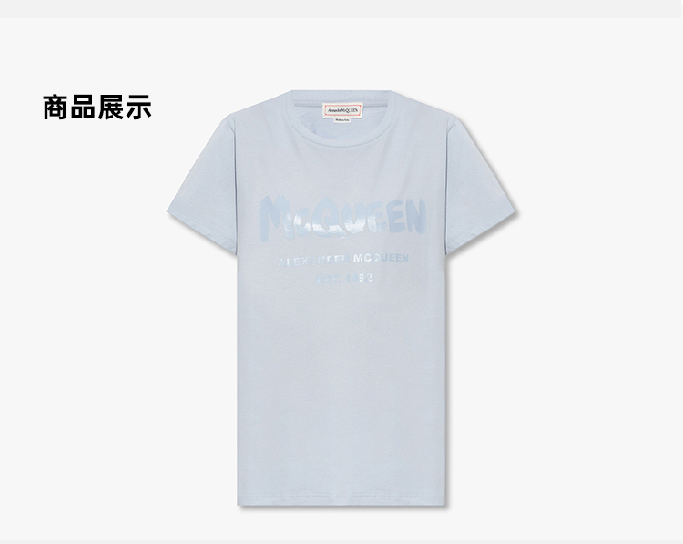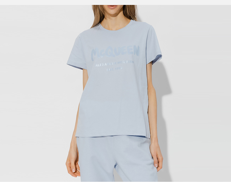 ALEXANDER MCQUEEN 亚历山大.麦昆 女士棉质字母徽标涂鸦印花圆领短袖T恤 浅蓝色 608614 QZAD3 0429