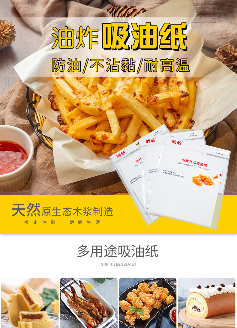 鸿蓝 油炸食品吸油纸20张 厨房烤箱烘焙煎食物专用垫底纸 煲汤吸油纸