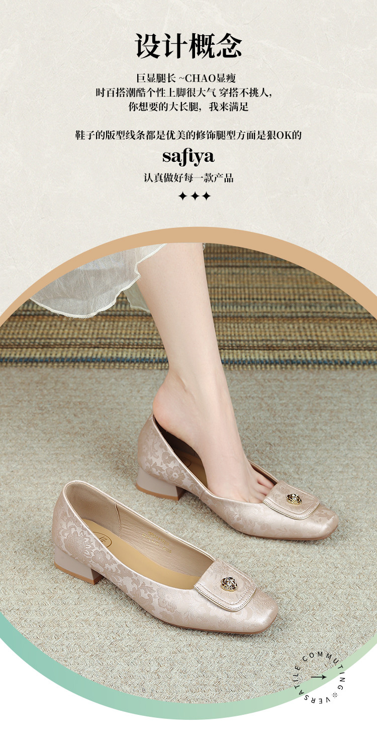 品质好货|Safiya/索菲娅2025新中式风春秋女士高级感时装百搭浅口低跟单鞋SFD3111703