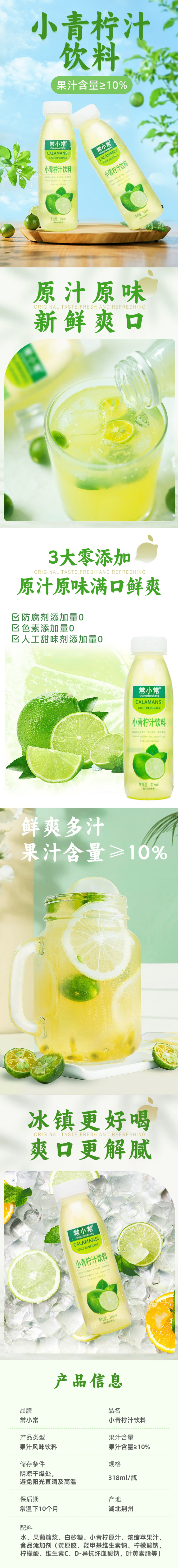 【严选】常小常小青柠汁饮料318ml*6瓶(厂家直发)