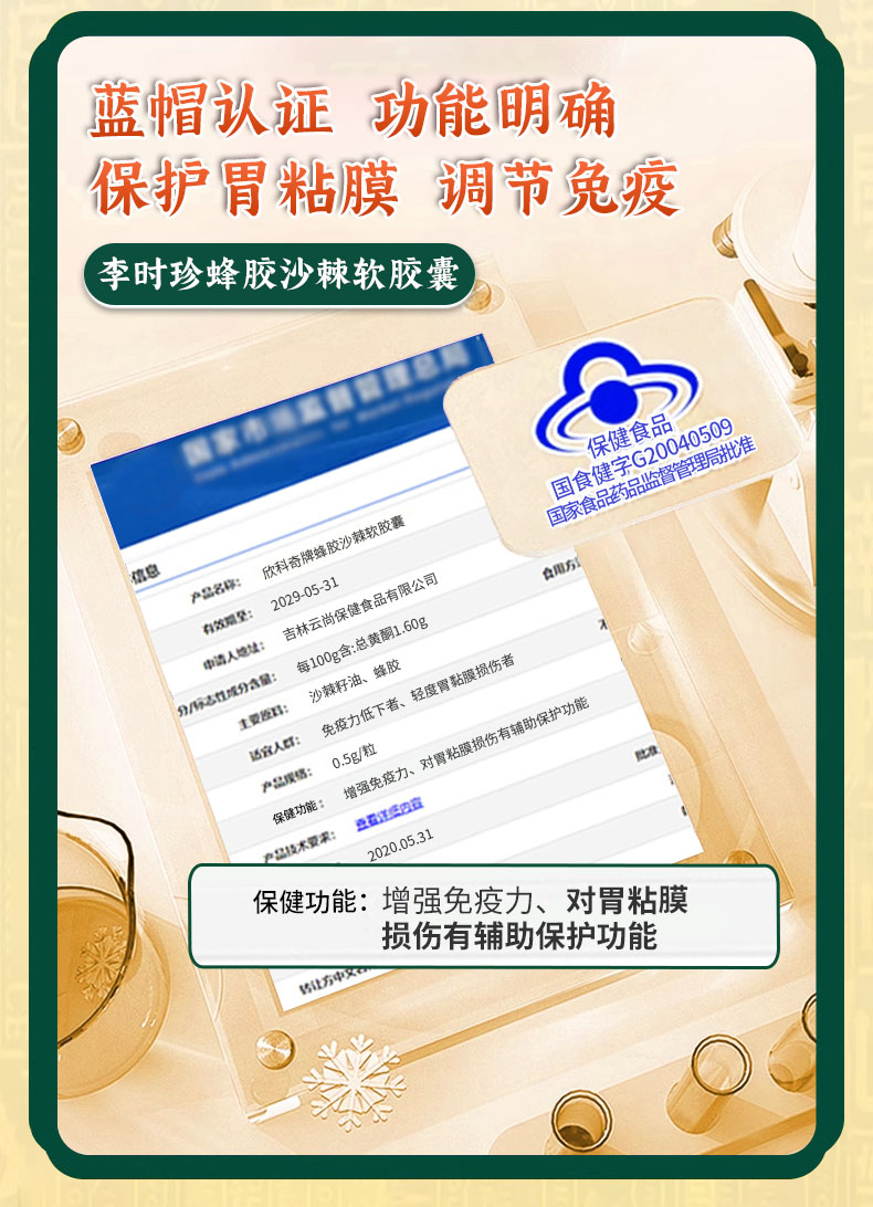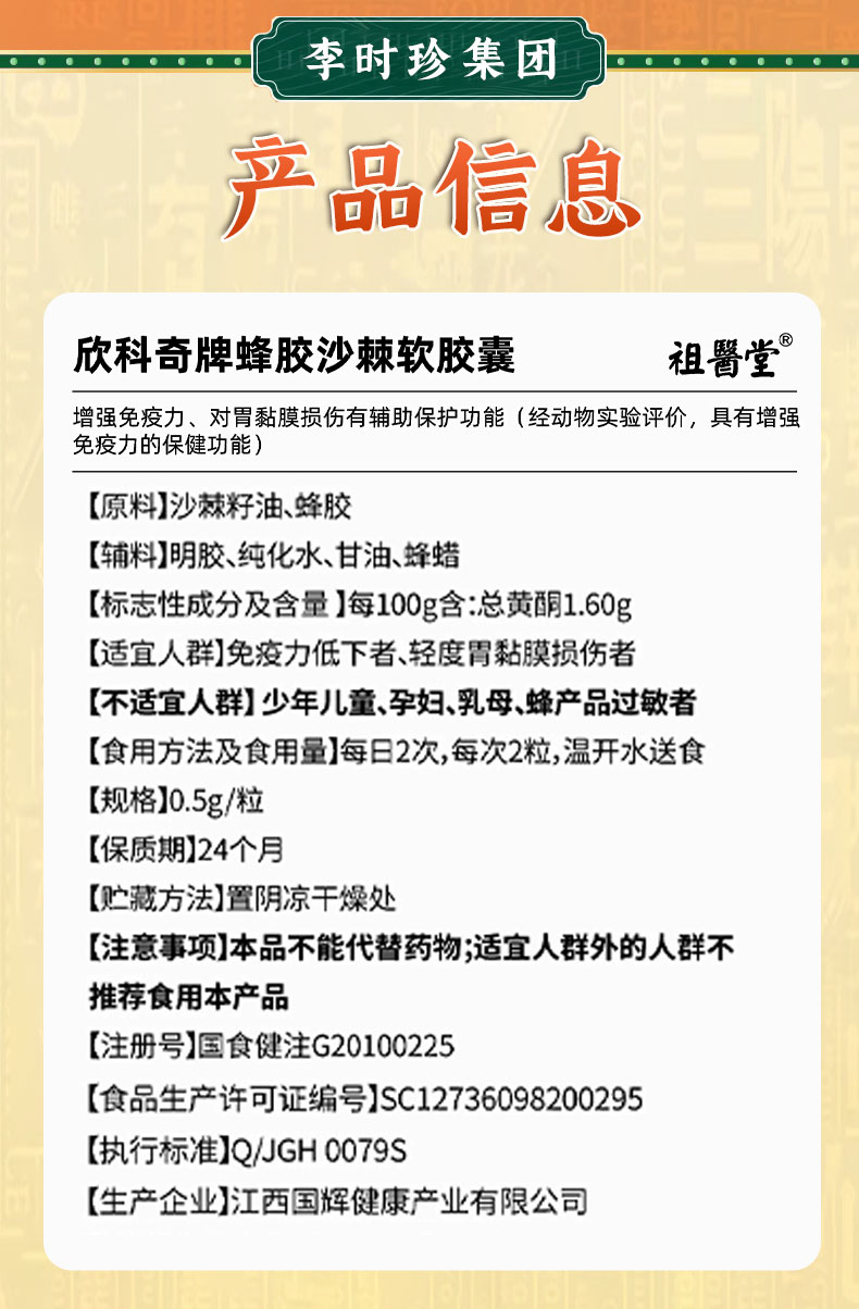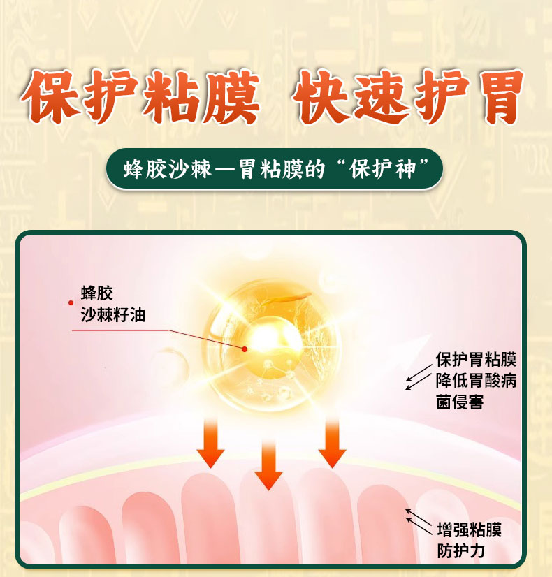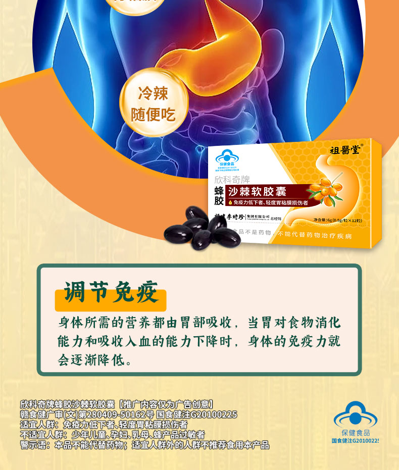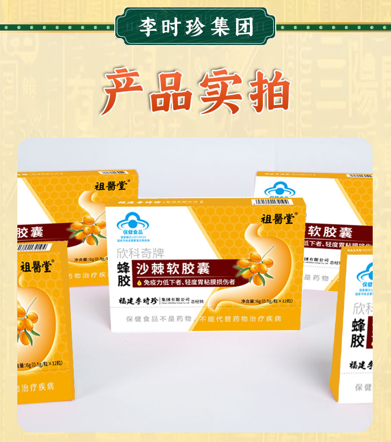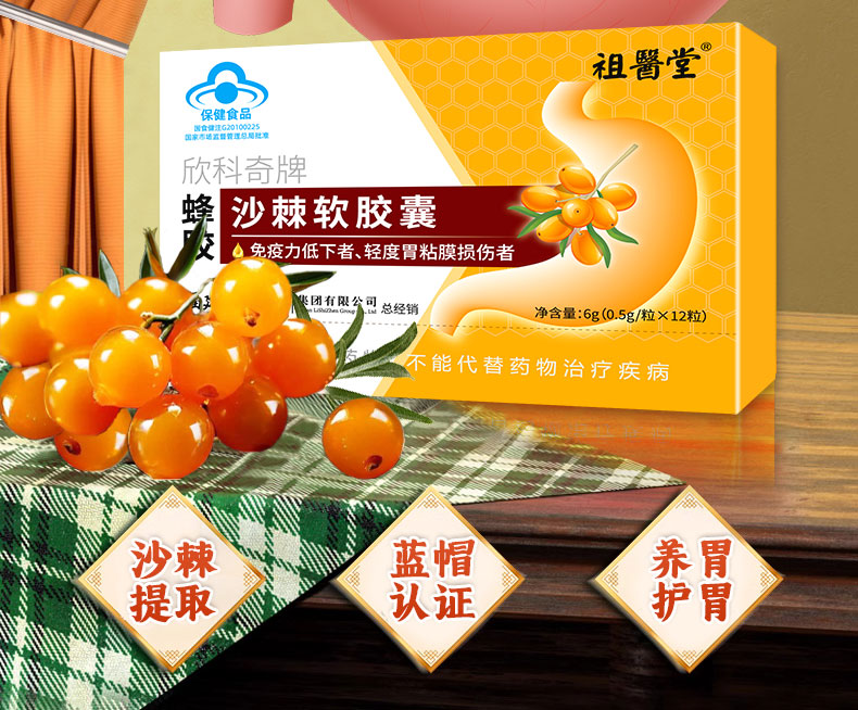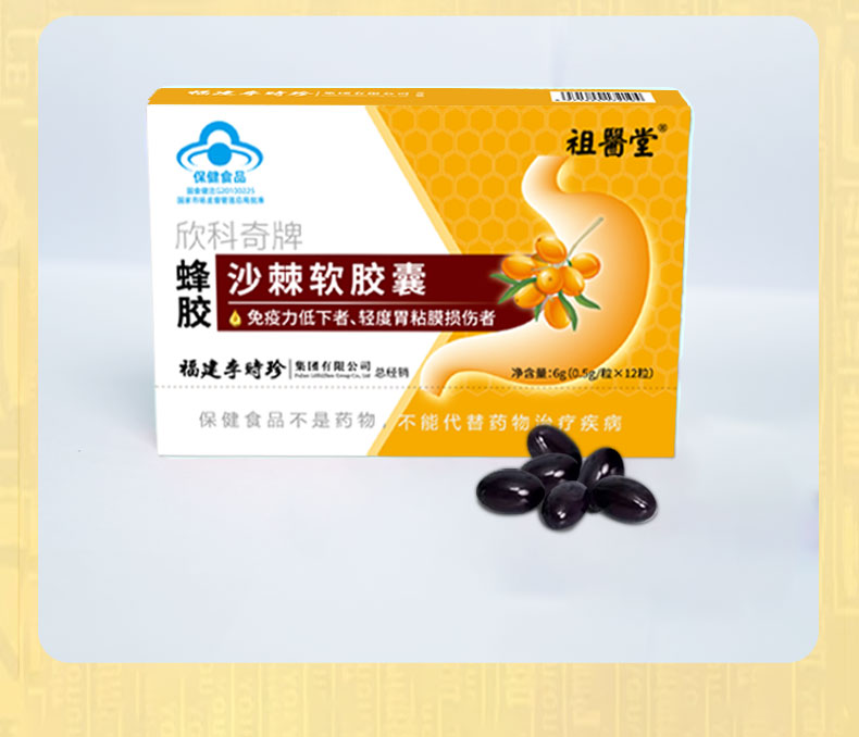 祖医堂欣科奇牌蜂胶沙棘软胶囊 保护粘膜 养出好胃 蓝帽认证 增强免疫力