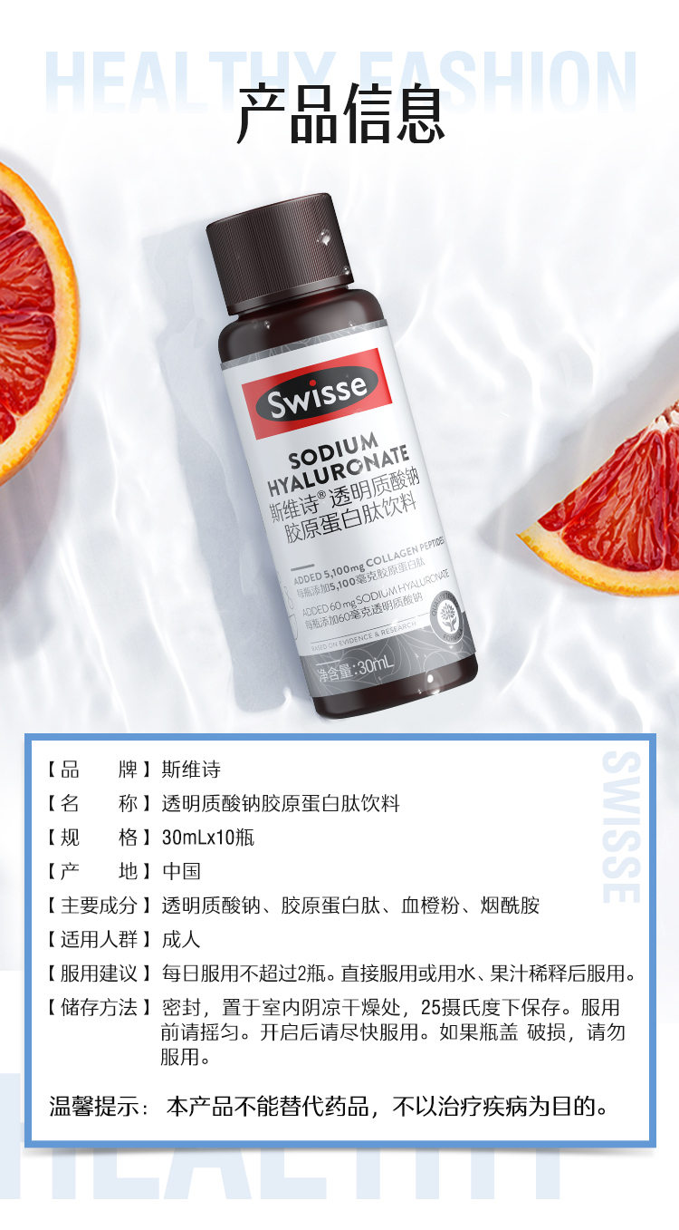 SWISSE斯维诗 透明质酸钠胶原蛋白钛饮料 水光瓶 30ml*10支/盒