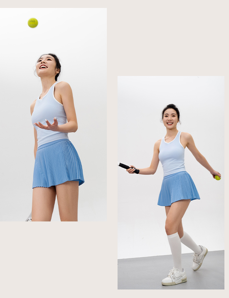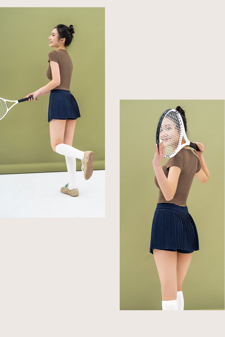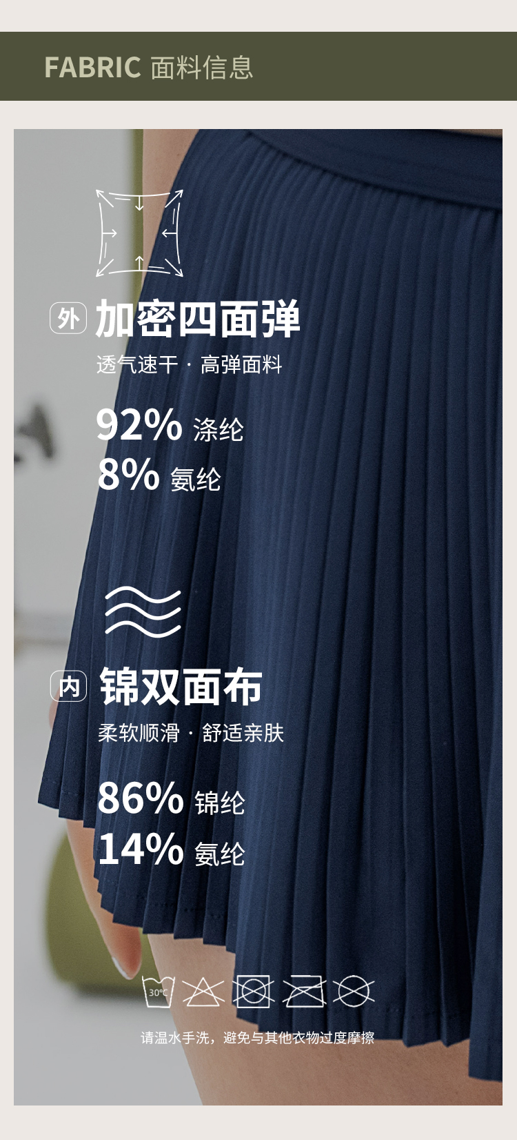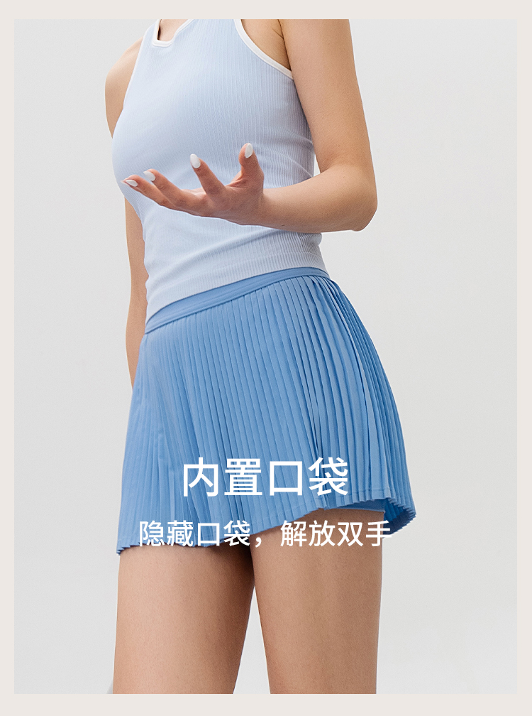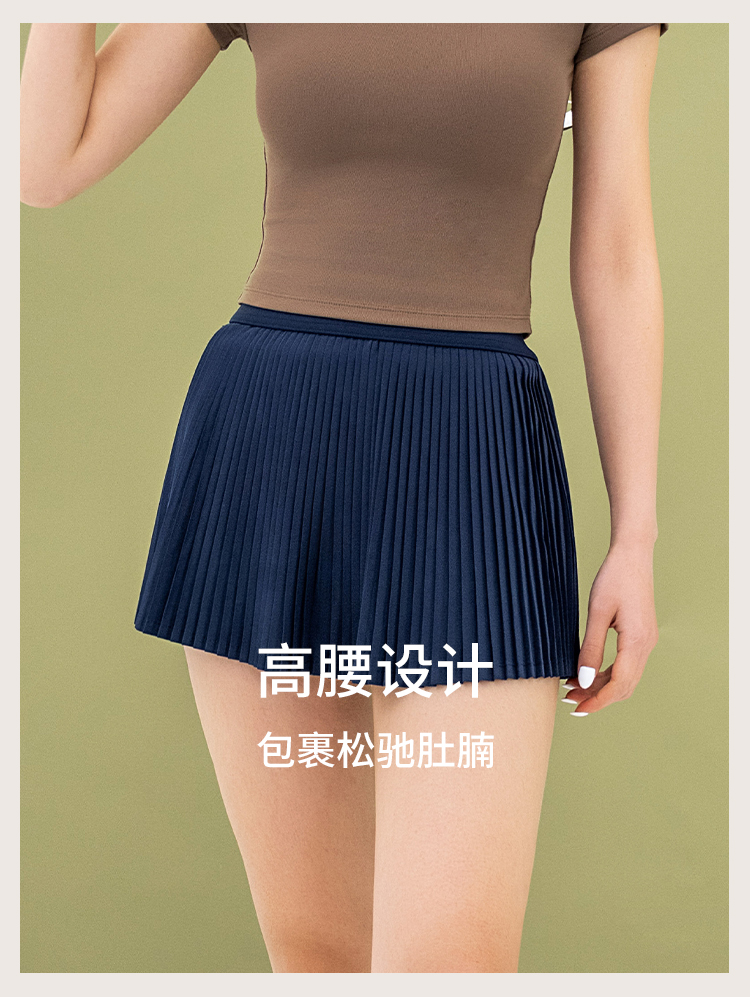 L RECNAVA A字型风琴百褶裙 高腰防走光网球裙 四面弹 透气速干 内置打底裤+口袋