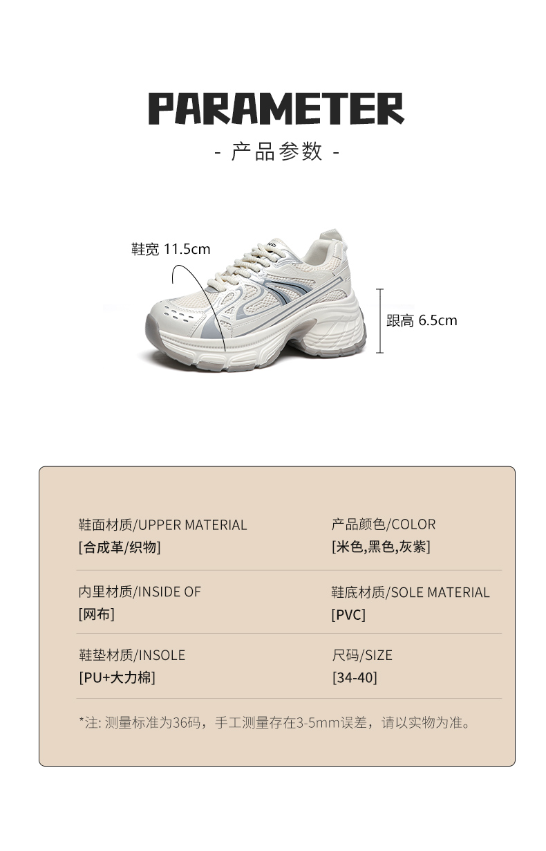 ZHR则则复古厚底增高6.5CM老爹鞋显瘦时尚舒适休闲鞋运动鞋CX50F