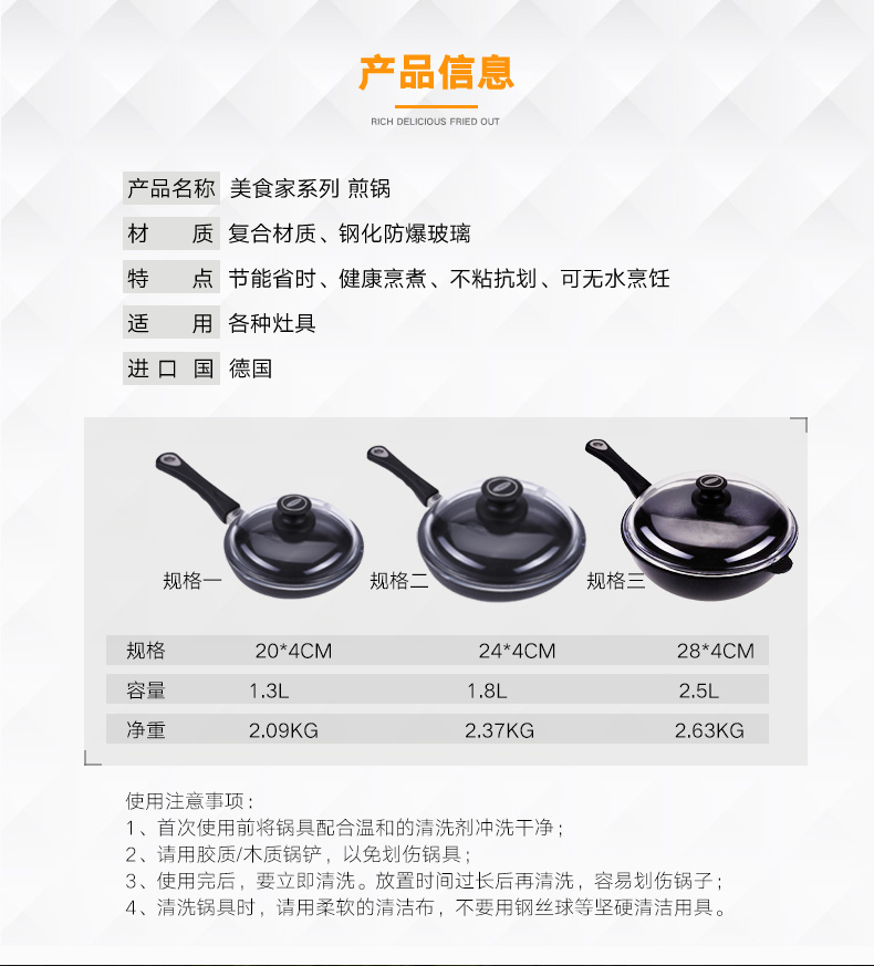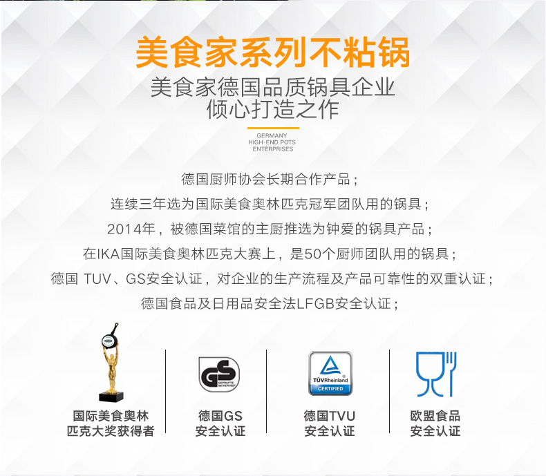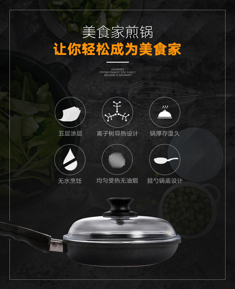 利快德国进口美食家煎锅电磁炉燃气通用平底盖煎蛋烙饼煎牛排锅