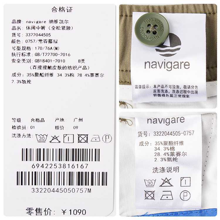 纳维凯尔Navigare意大利小帆船休闲针织中裤男士绿色运动短裤夏季五分裤 3322044505