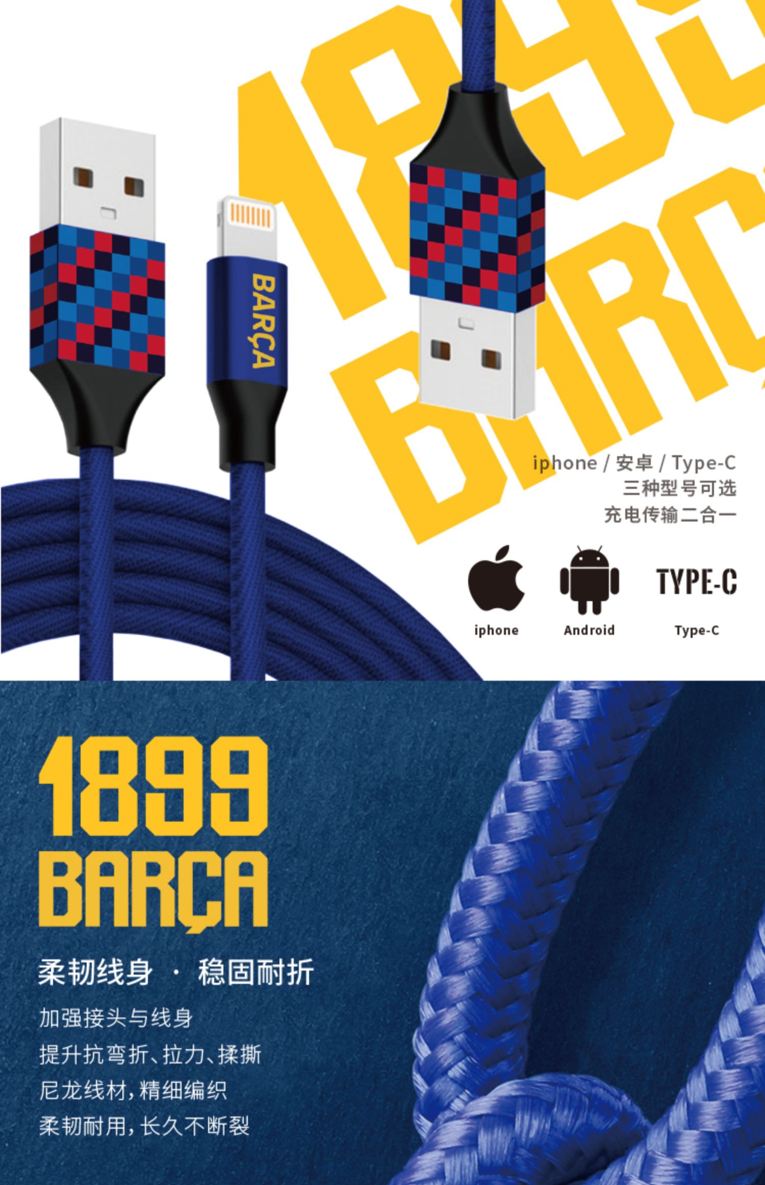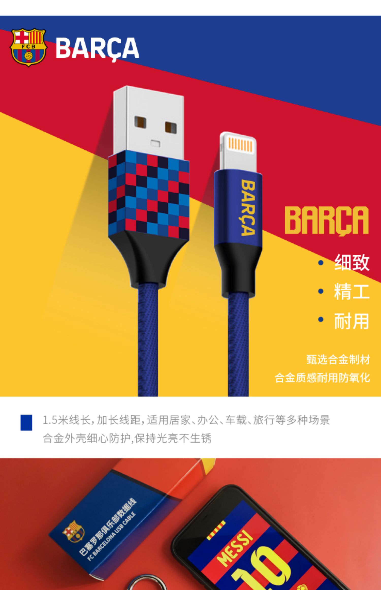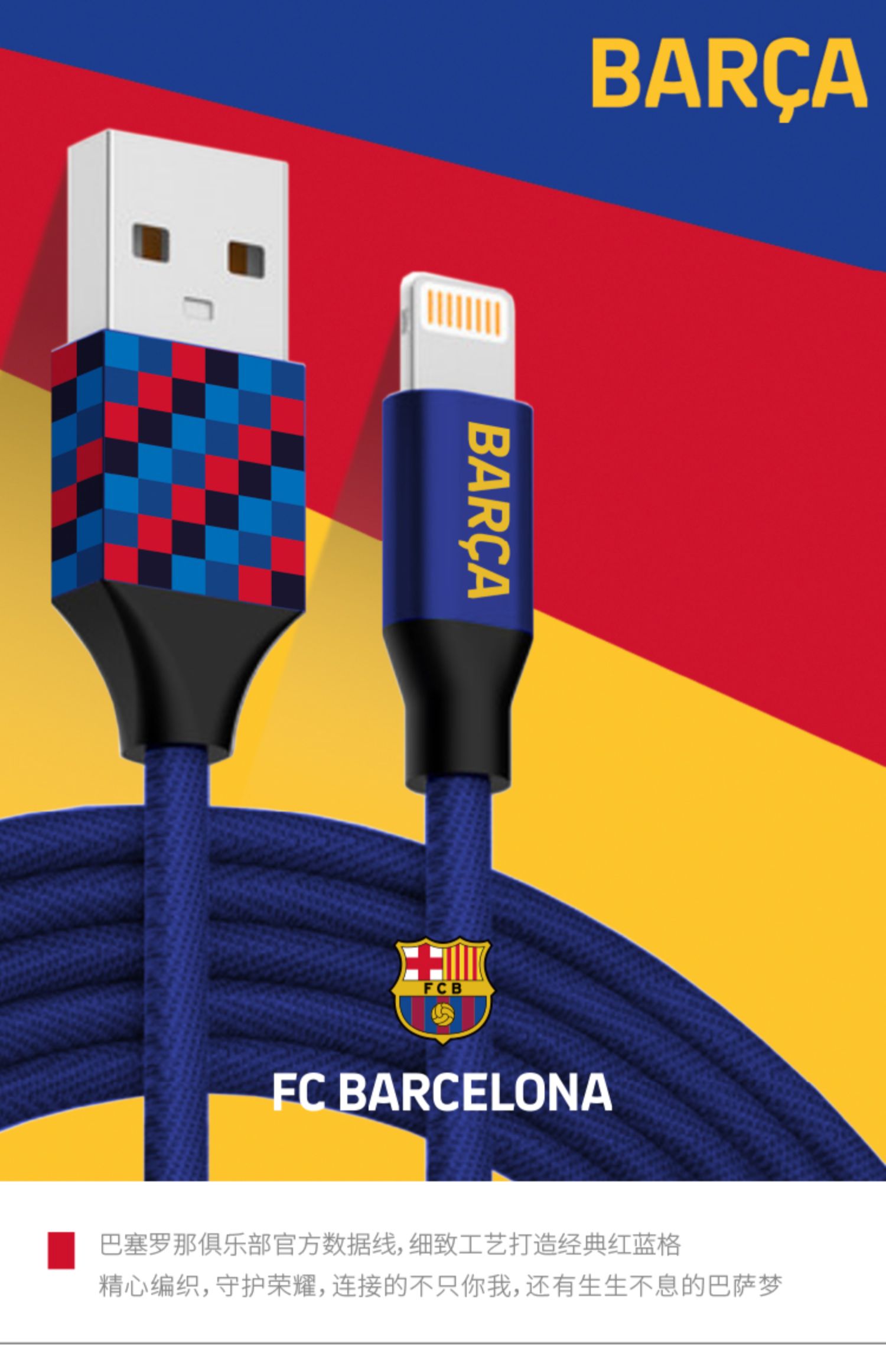 巴塞罗那官方商品丨巴萨USB超长充电数据线充电线快充iphone