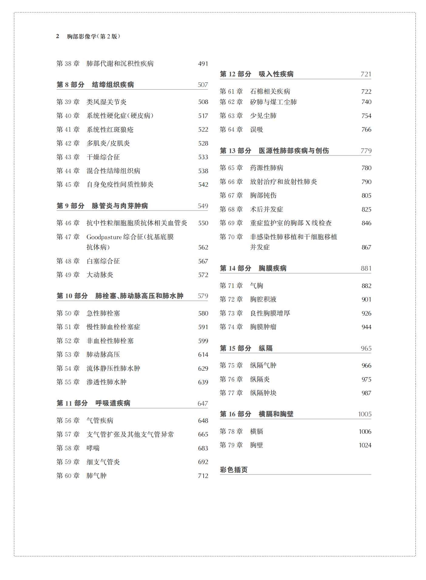 《胸部影像学》是Elsevier(Saunders)出版的“Expert Radiology Series”,之一,由国际上顶尖的影像学专家共同编写,代表了该领域的顶尖水平。 《胸部影像学》第2版对第1版内容进行了精简、更新,现全书共79章,内容包括各种胸部疾病的X线、CT、MRI和PET-CT及超声等影像学表现,以及影像相关的病理和临床表现的小结,并且以表格的形式总结了各种胸部疾病的典型表现和要点。