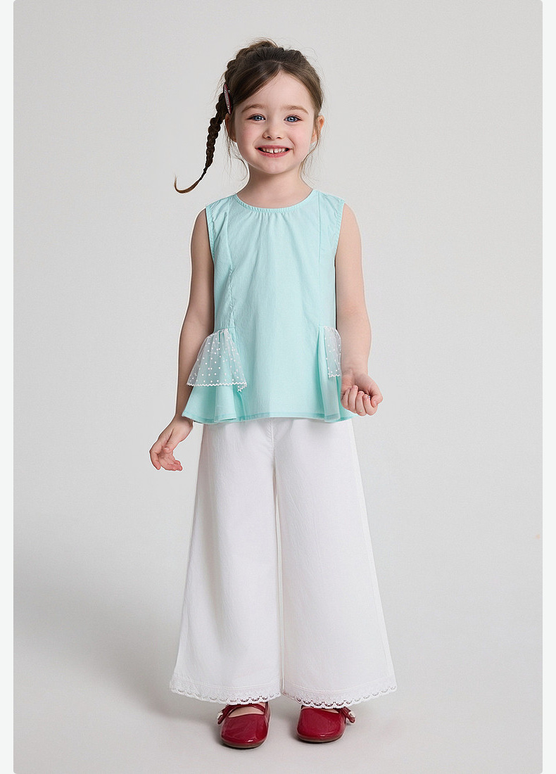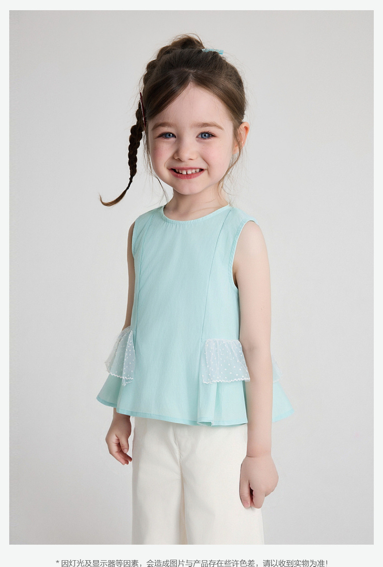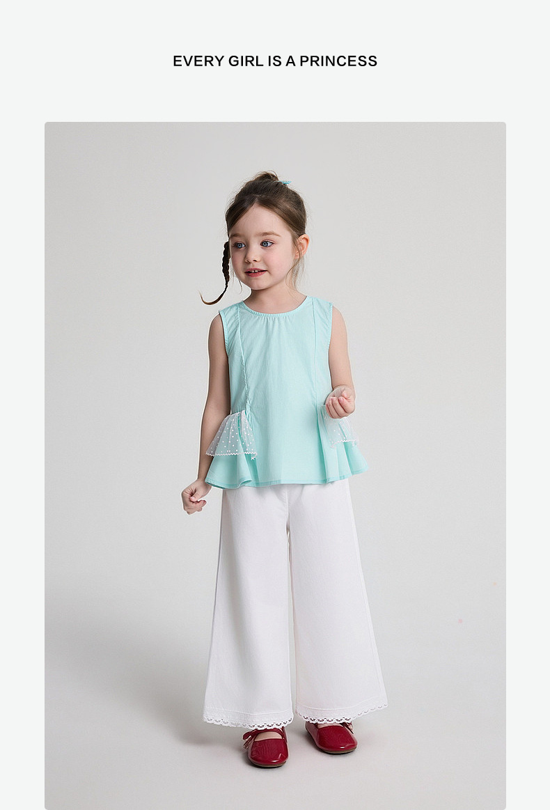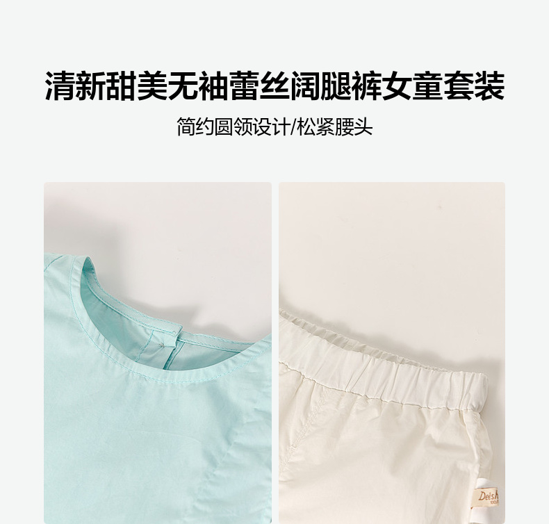 笛莎Deesha 2026年夏季新款小童女童直筒裤套棉布套装