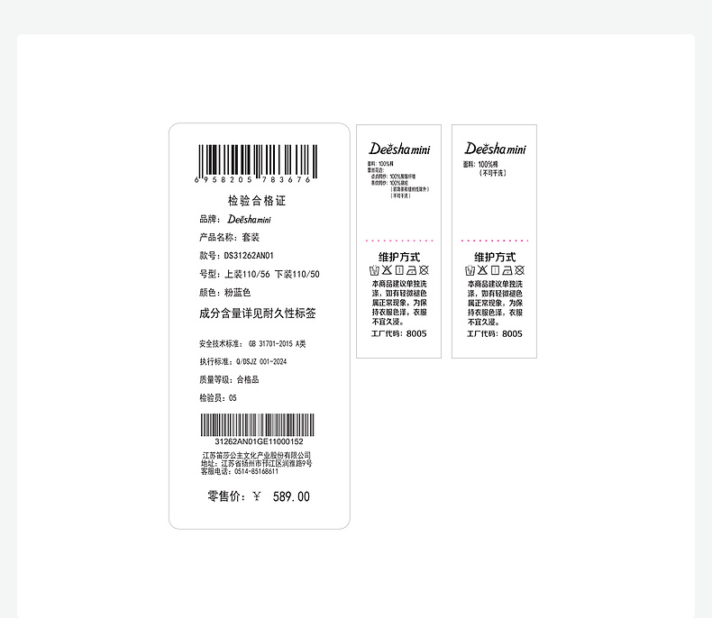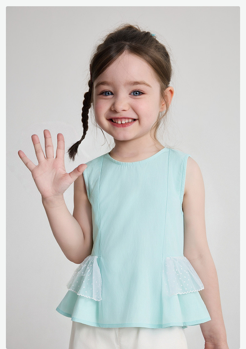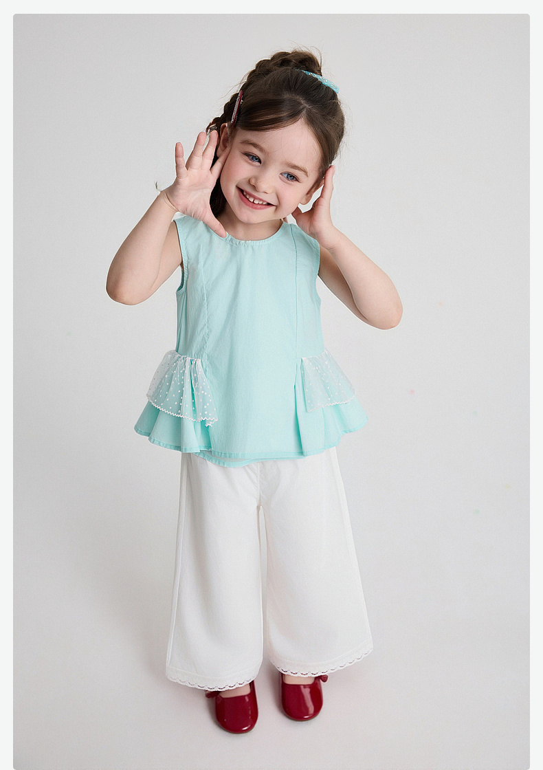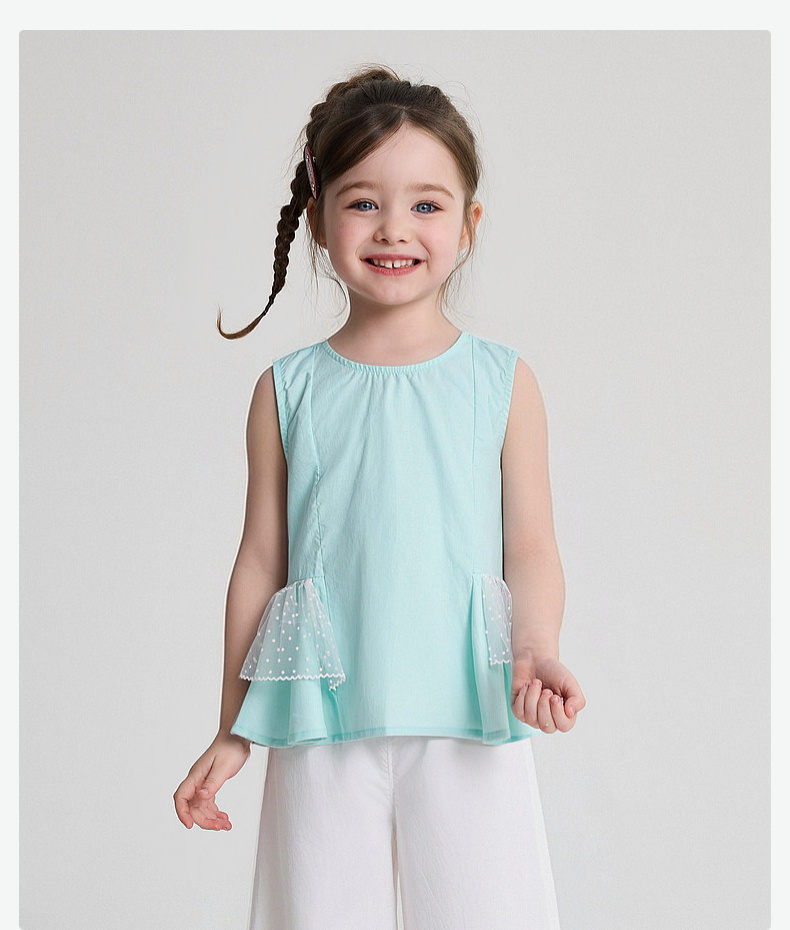 笛莎Deesha 2026年夏季新款小童女童直筒裤套棉布套装