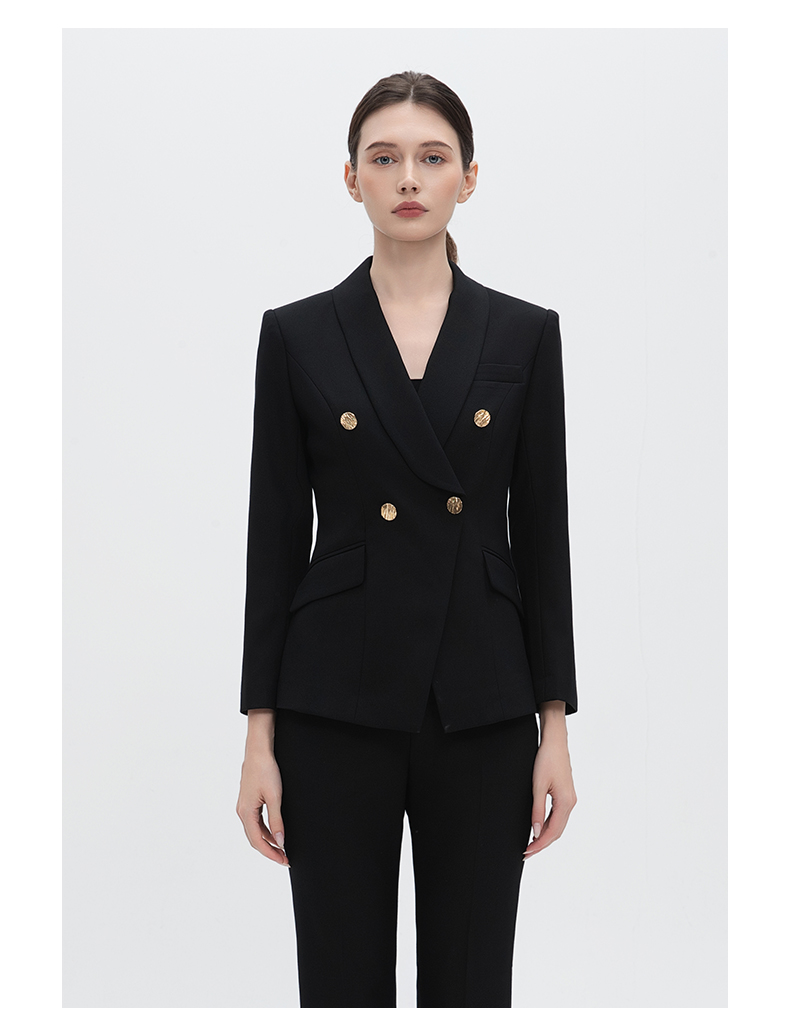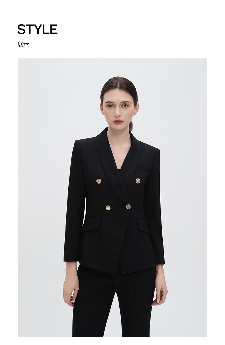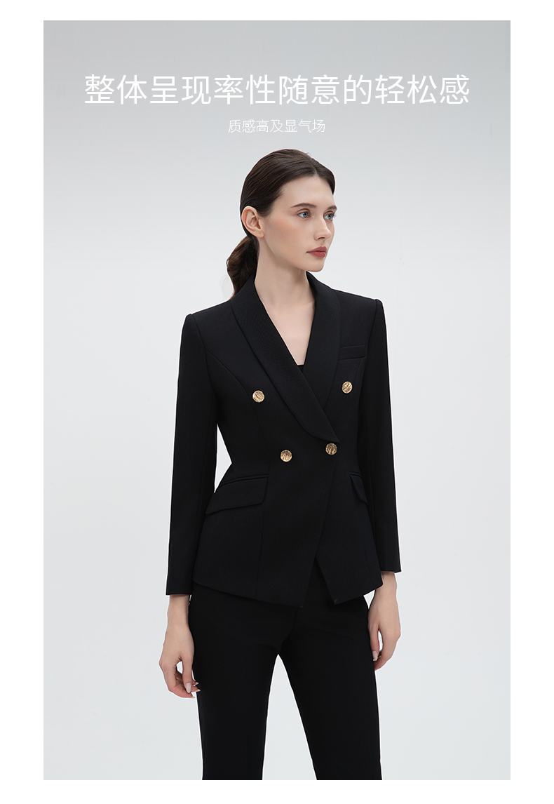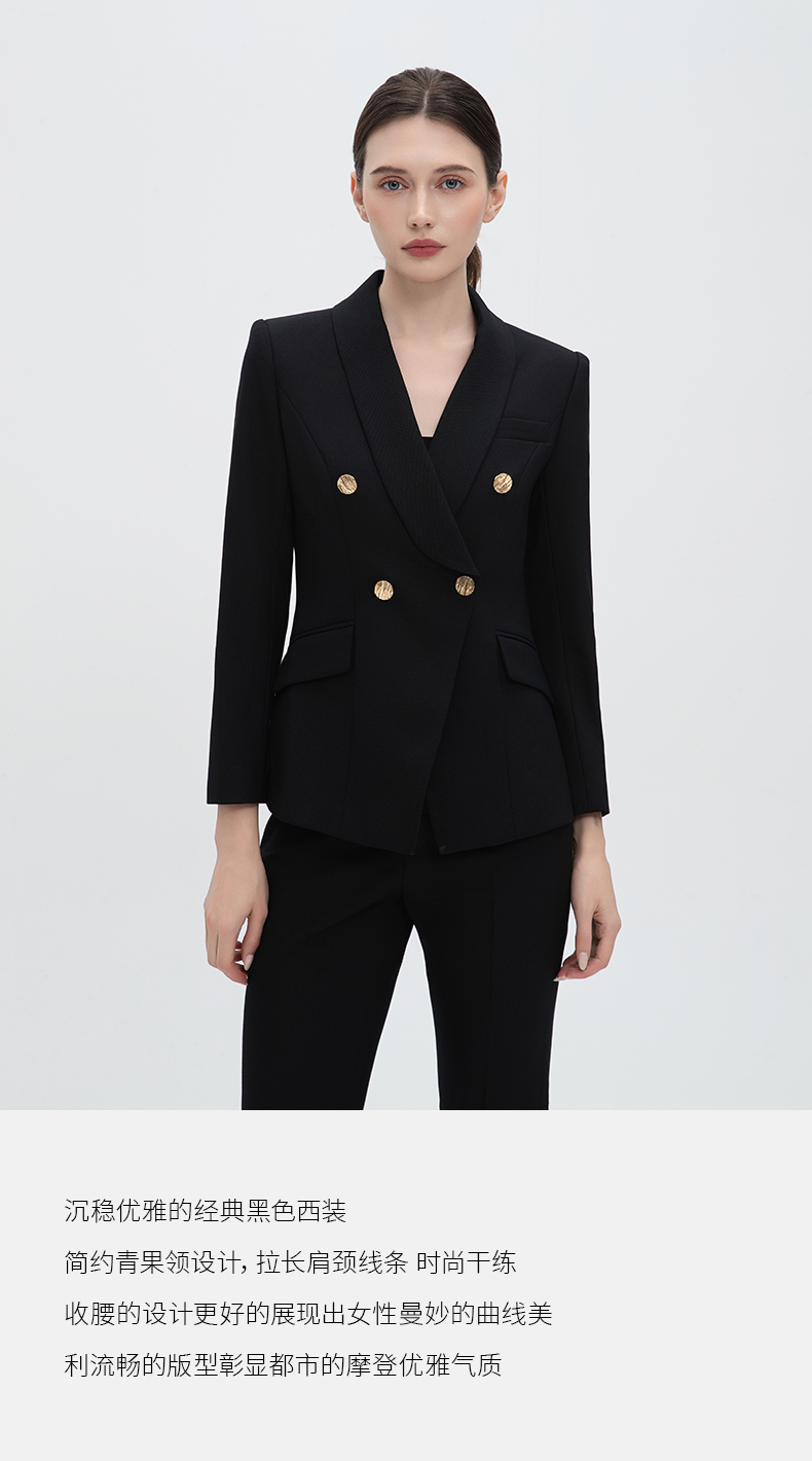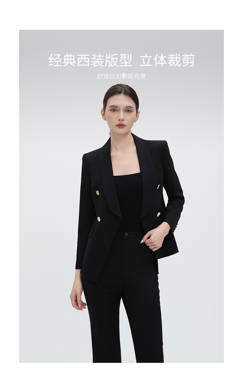 IWY/干练黑色新中式职业西服套装气质职场总裁范干练时尚工作服OLC14105+P34105-黑色
