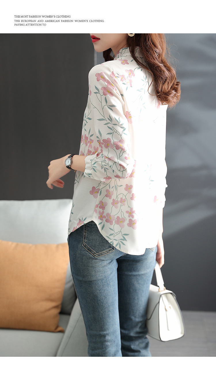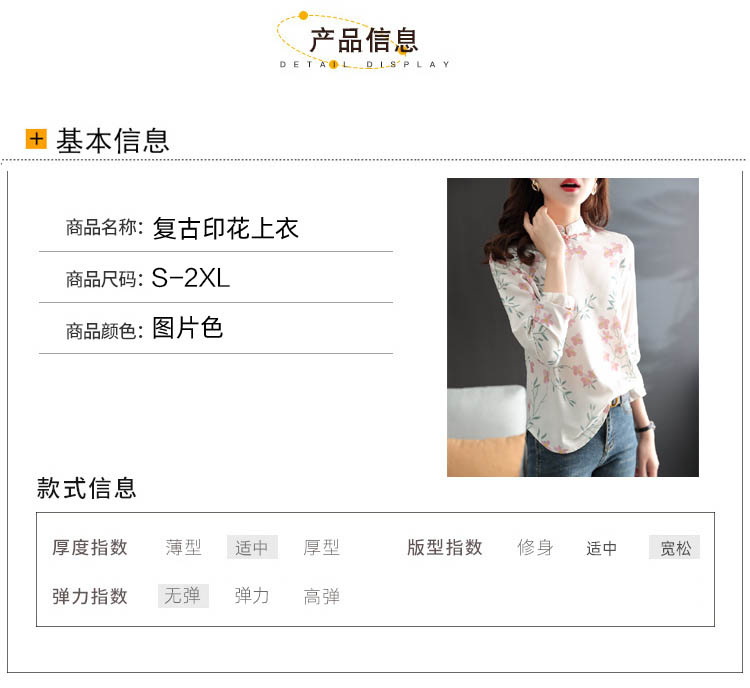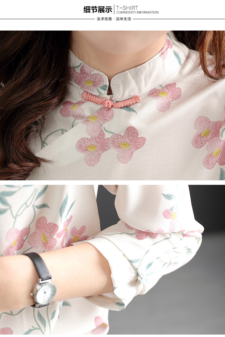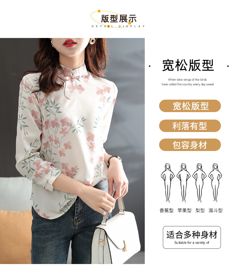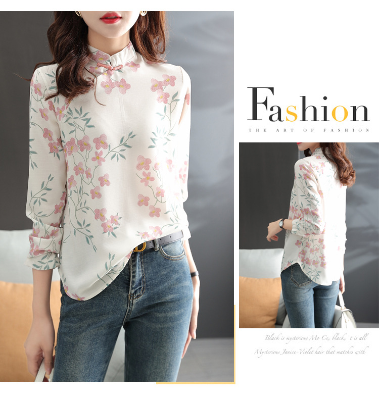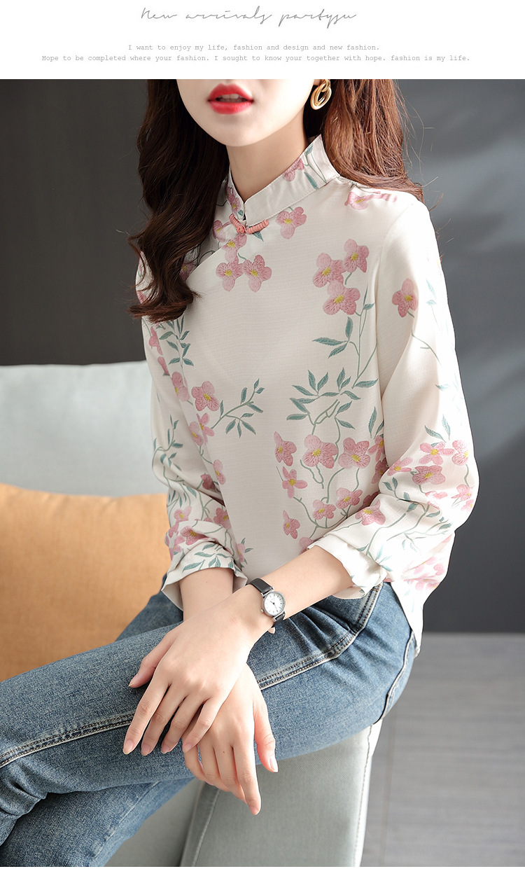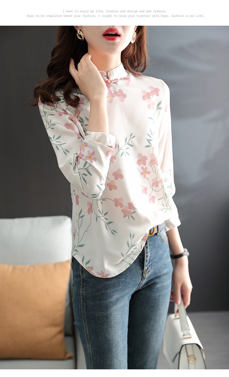 中式改良旗袍上衣女春秋中国风复古立领气质盘扣印花刺绣长袖衬衫 YX2051