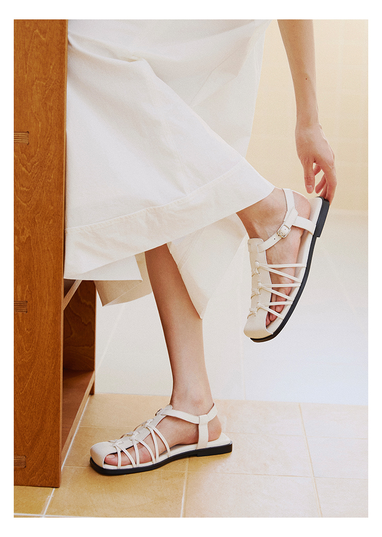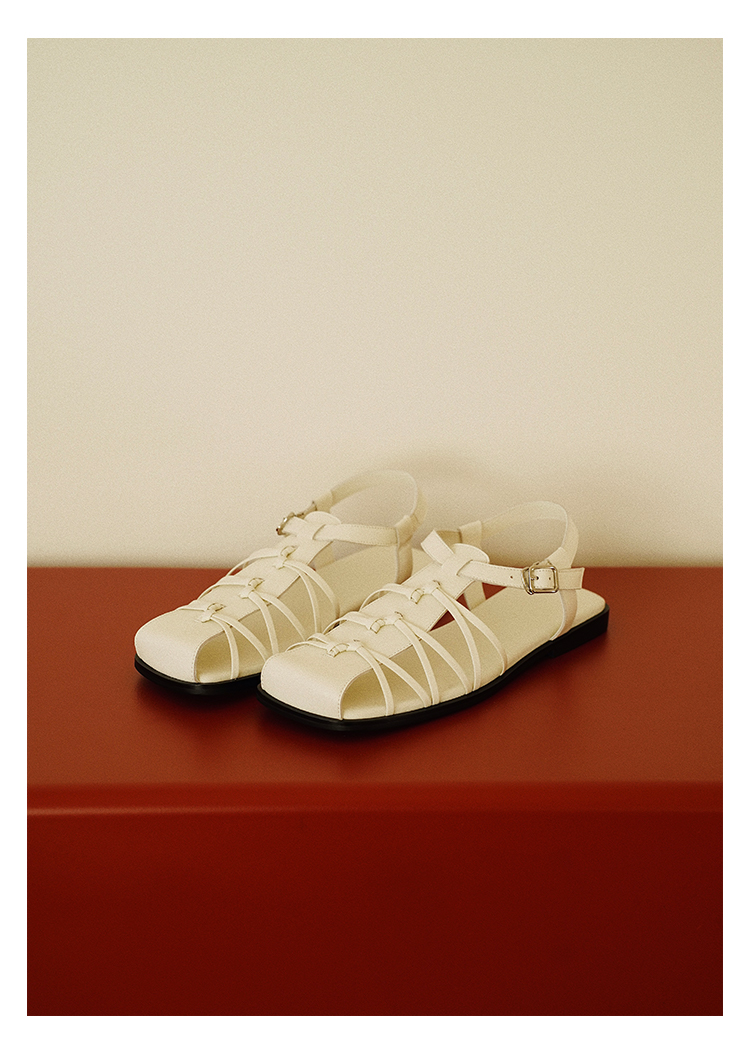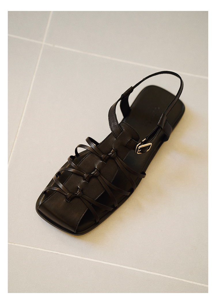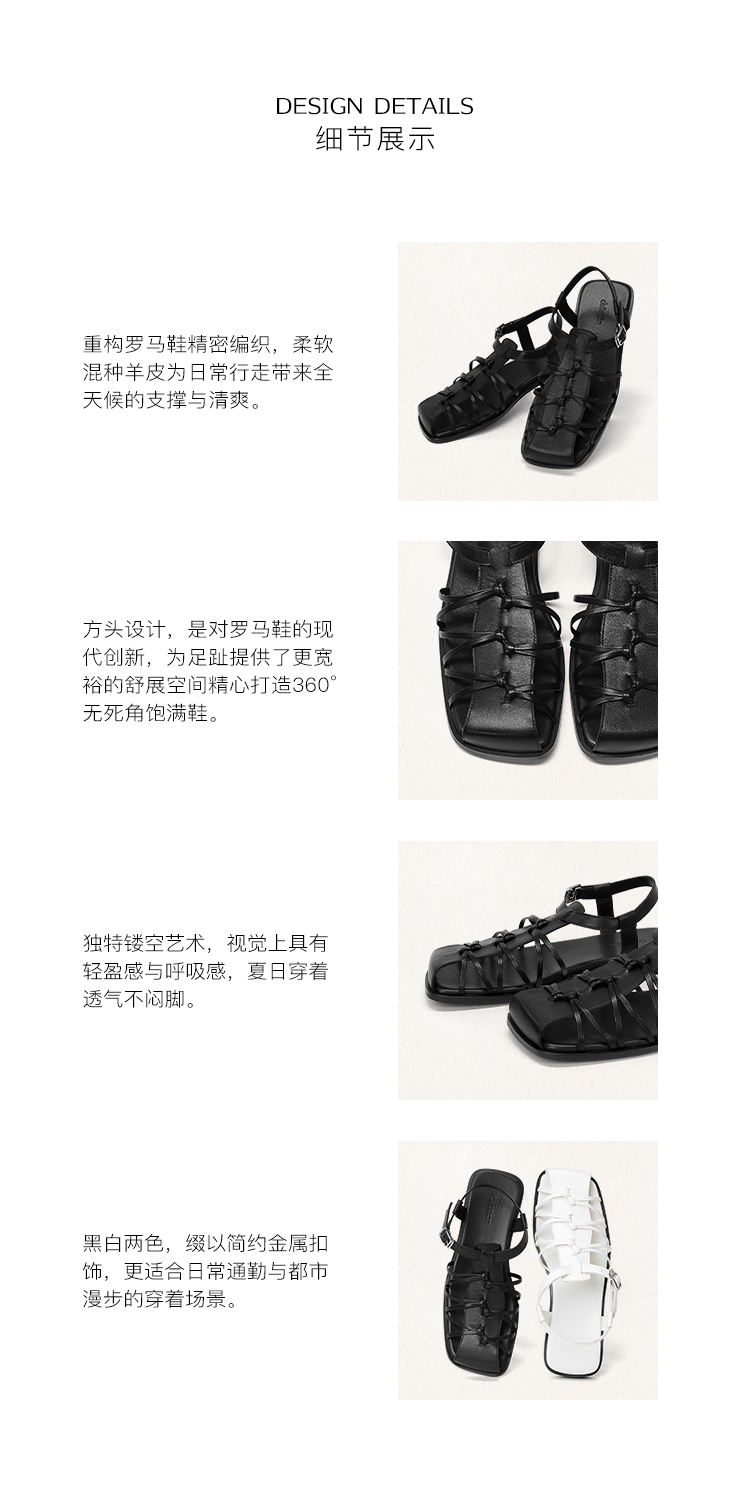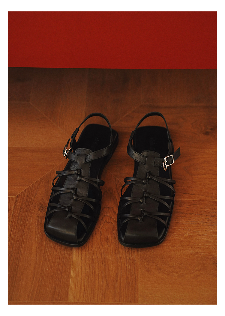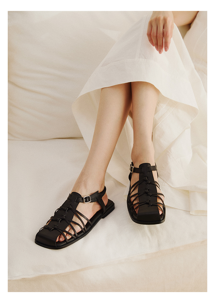 duimian对面「藤迹」黑色/白色罗马凉鞋