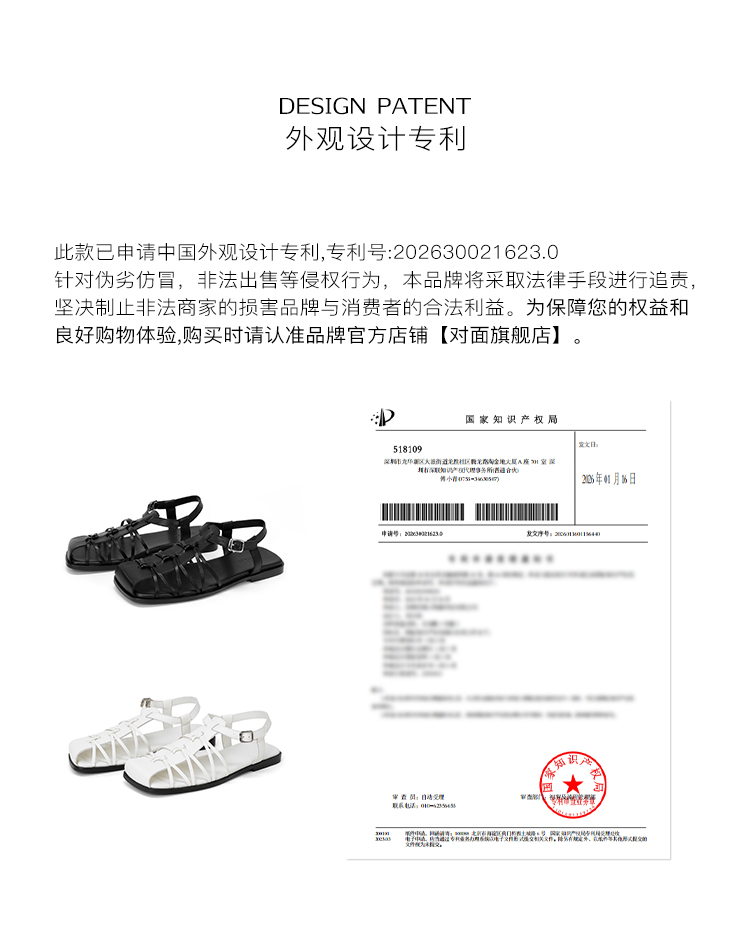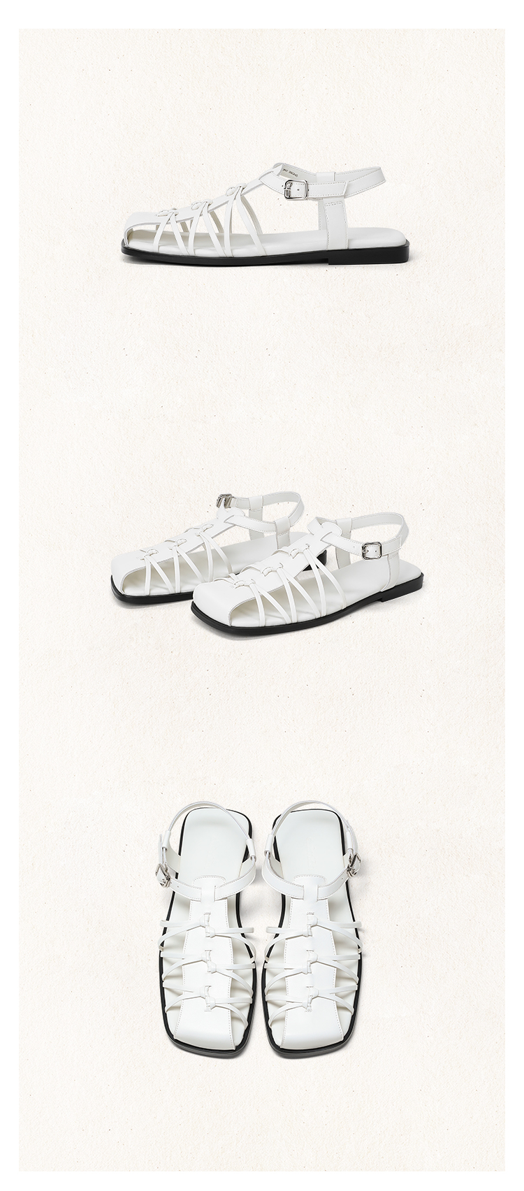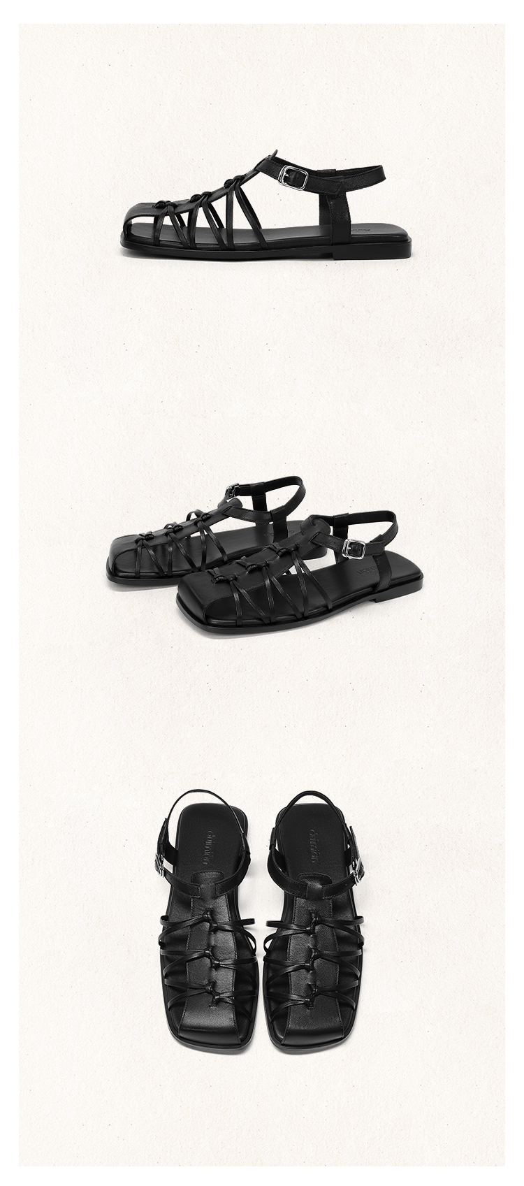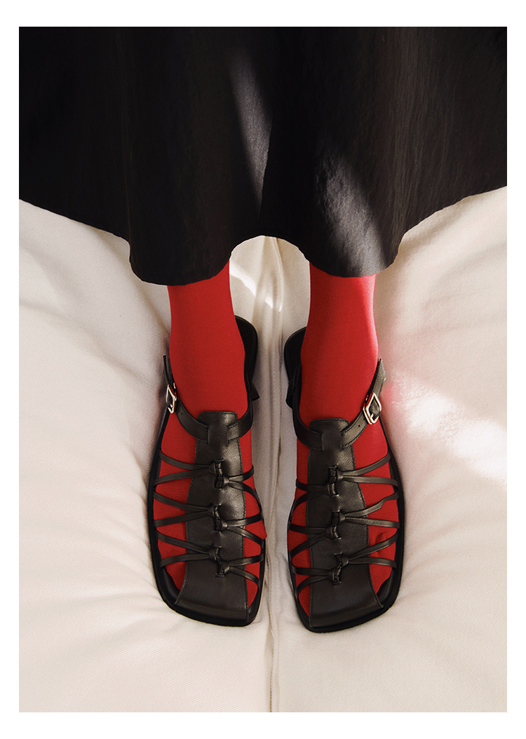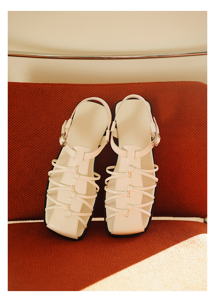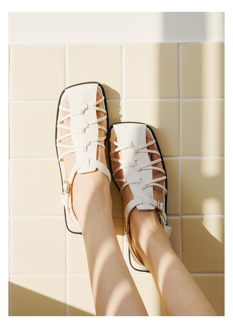 duimian对面「藤迹」黑色/白色罗马凉鞋