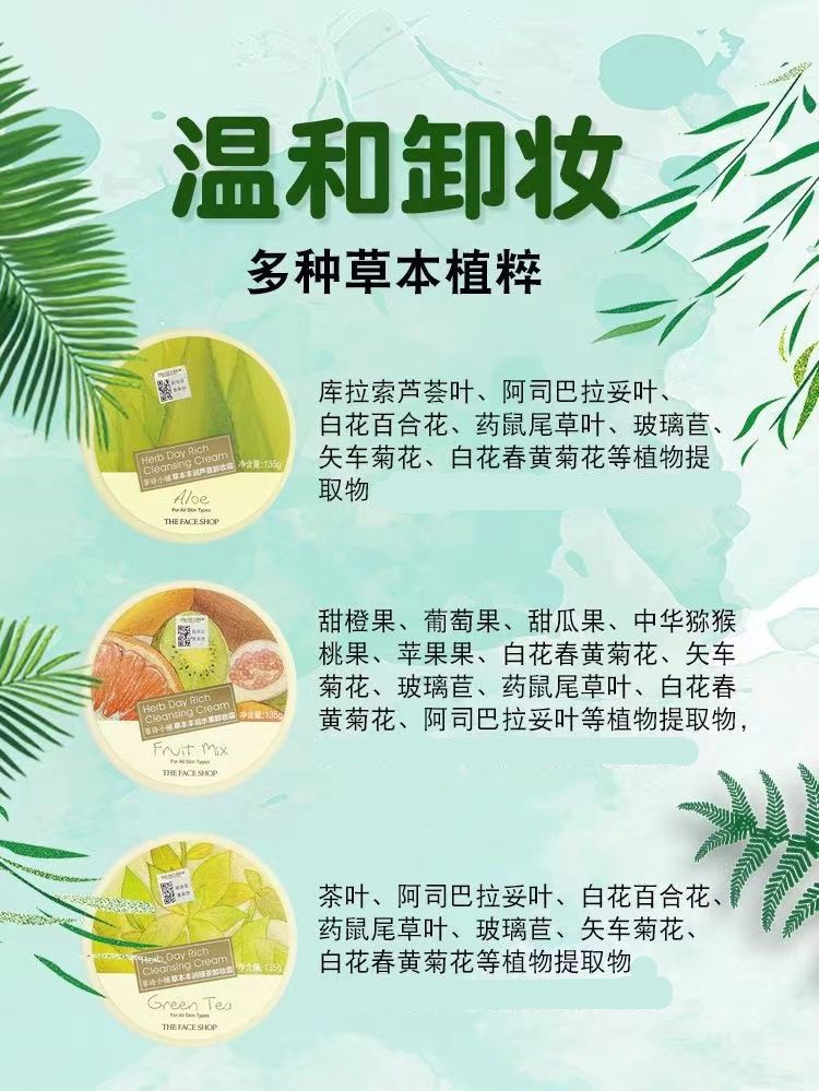 【爆款超低价预售 急单慎拍】菲诗小铺草本芦荟水果绿茶卸妆清洁霜水乳膏面部深层干净温和保湿