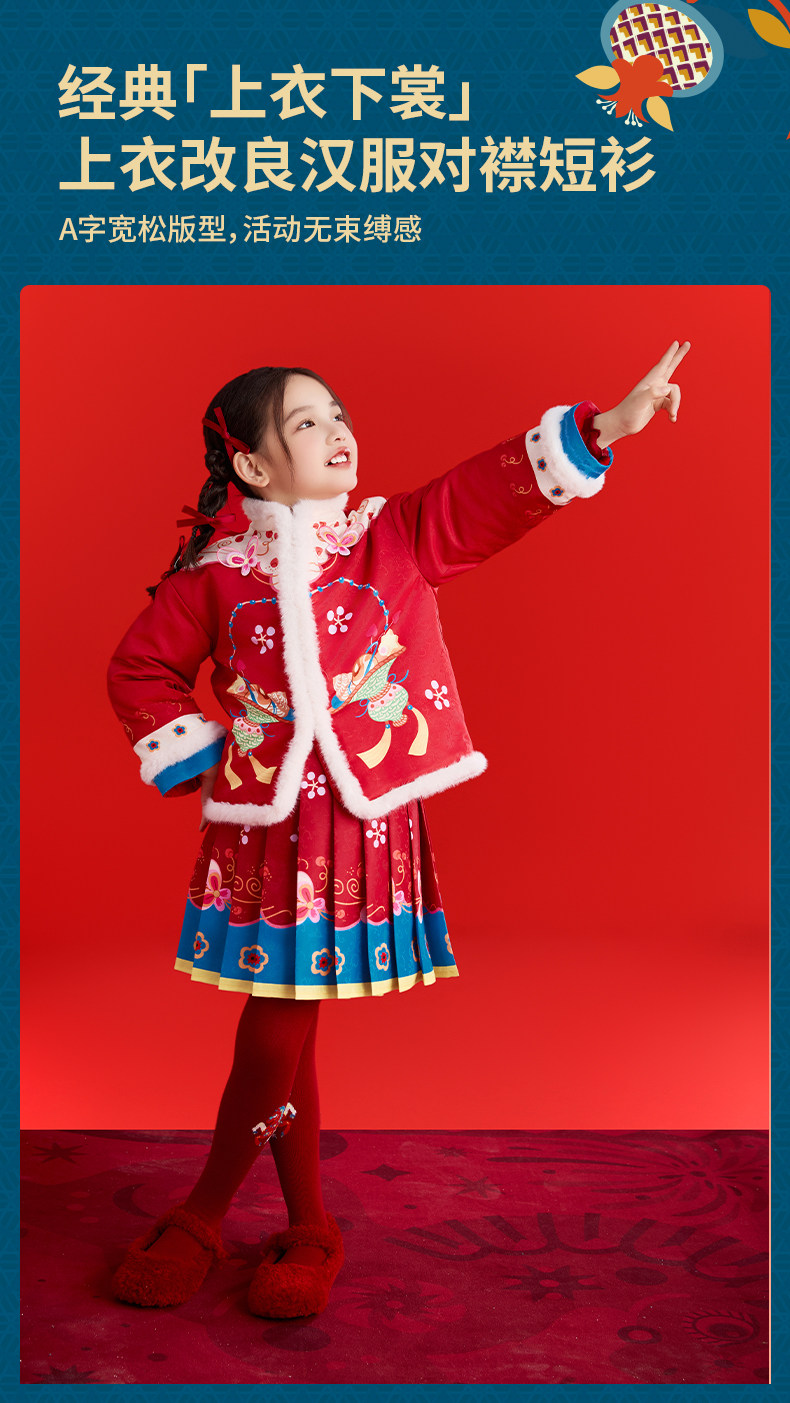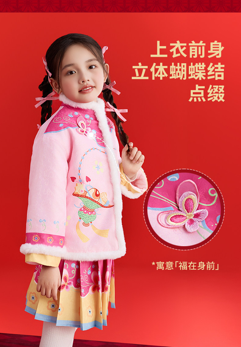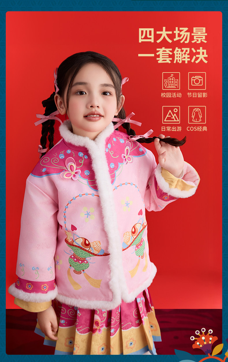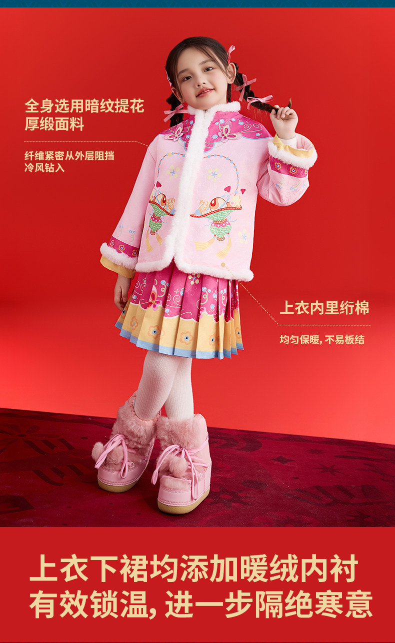 年衣童装儿童加棉中式套装女童冬季新款中国风一路生花加棉中式套装