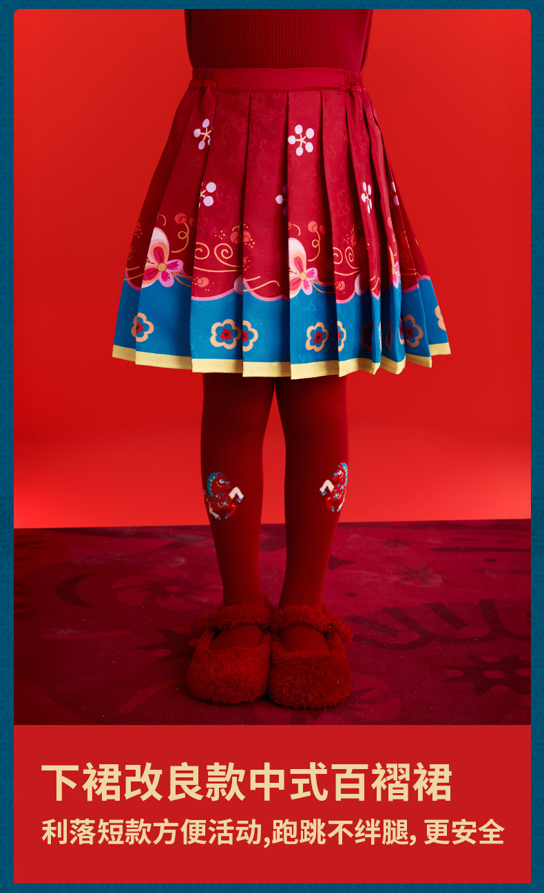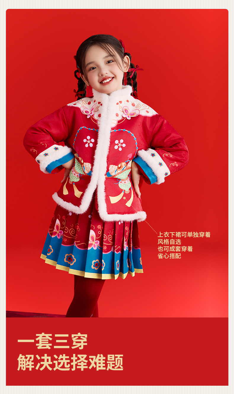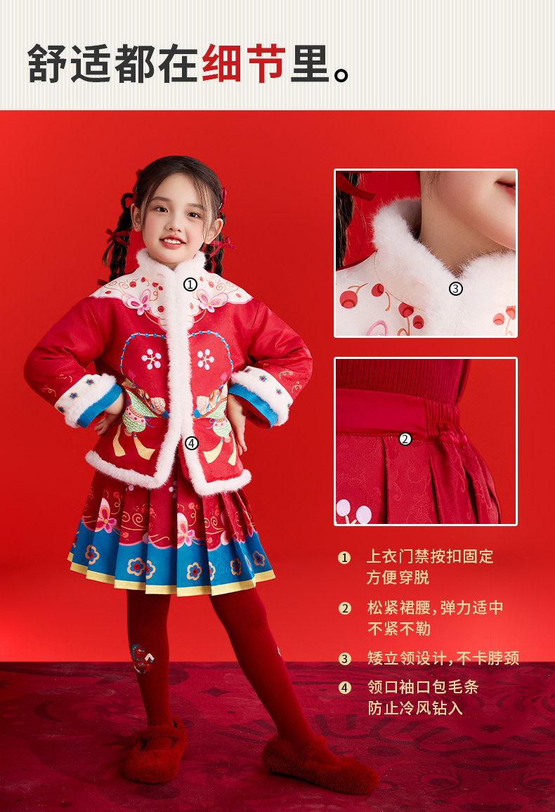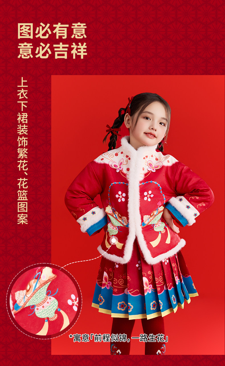 年衣童装儿童加棉中式套装女童冬季新款中国风一路生花加棉中式套装