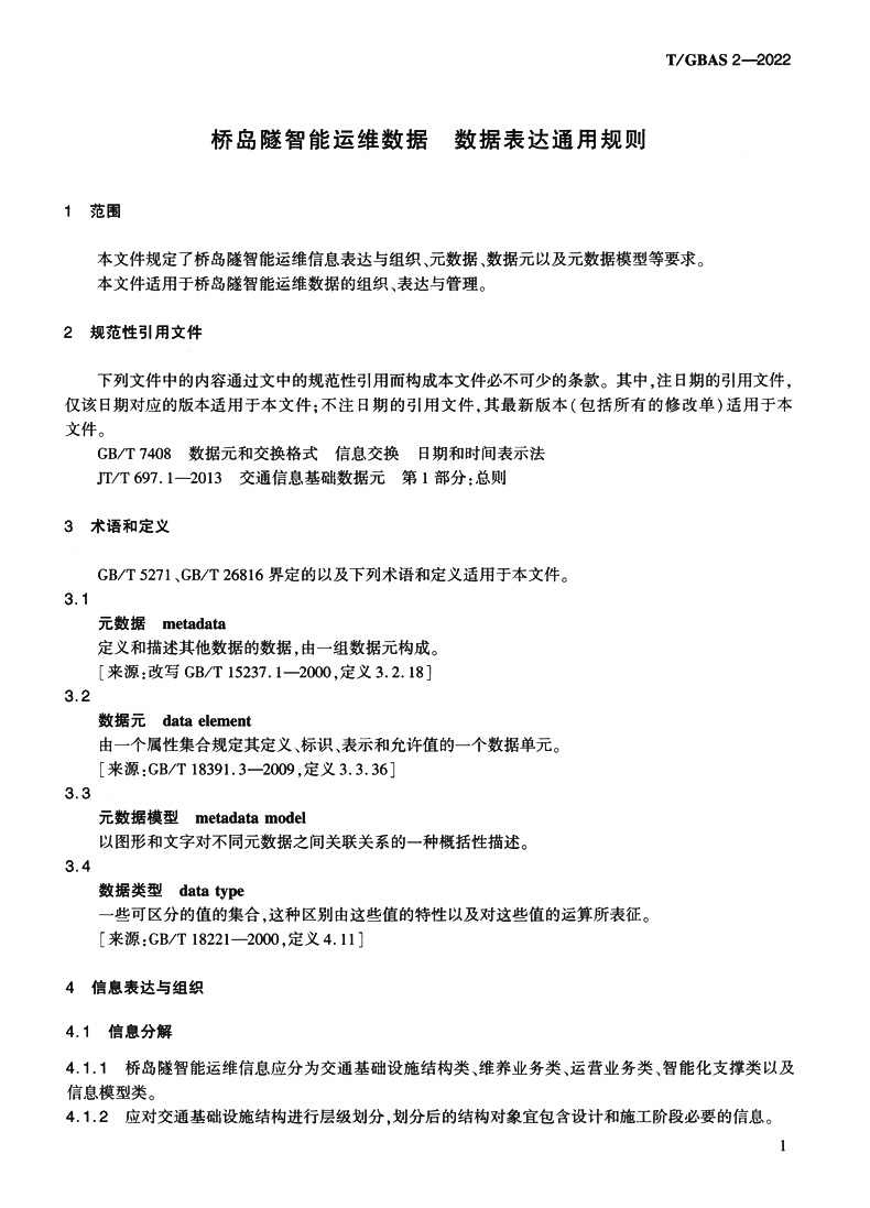 书名:桥岛隧智能运维数据 数据表达通用规则T/GBAS 2—2022