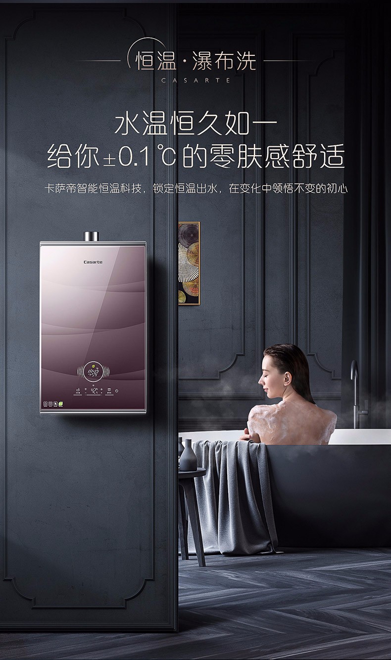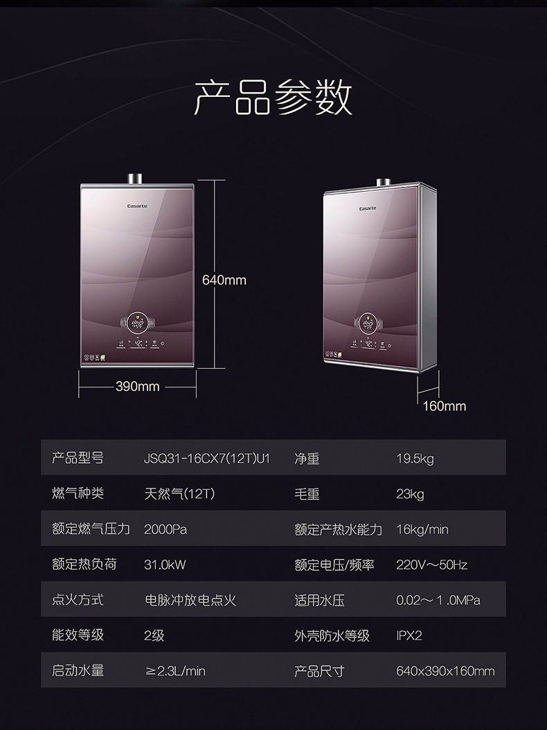 卡萨帝(Casarte)燃气热水器16升天然气大水量水伺服恒温三档五驱增压AI智能交互安防CX7 16升【多点供水】JSQ31-16CX7(12T)U1