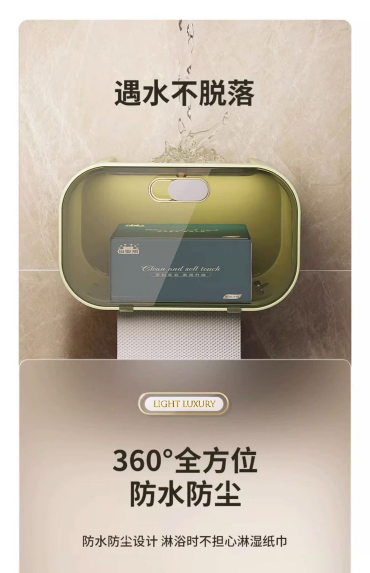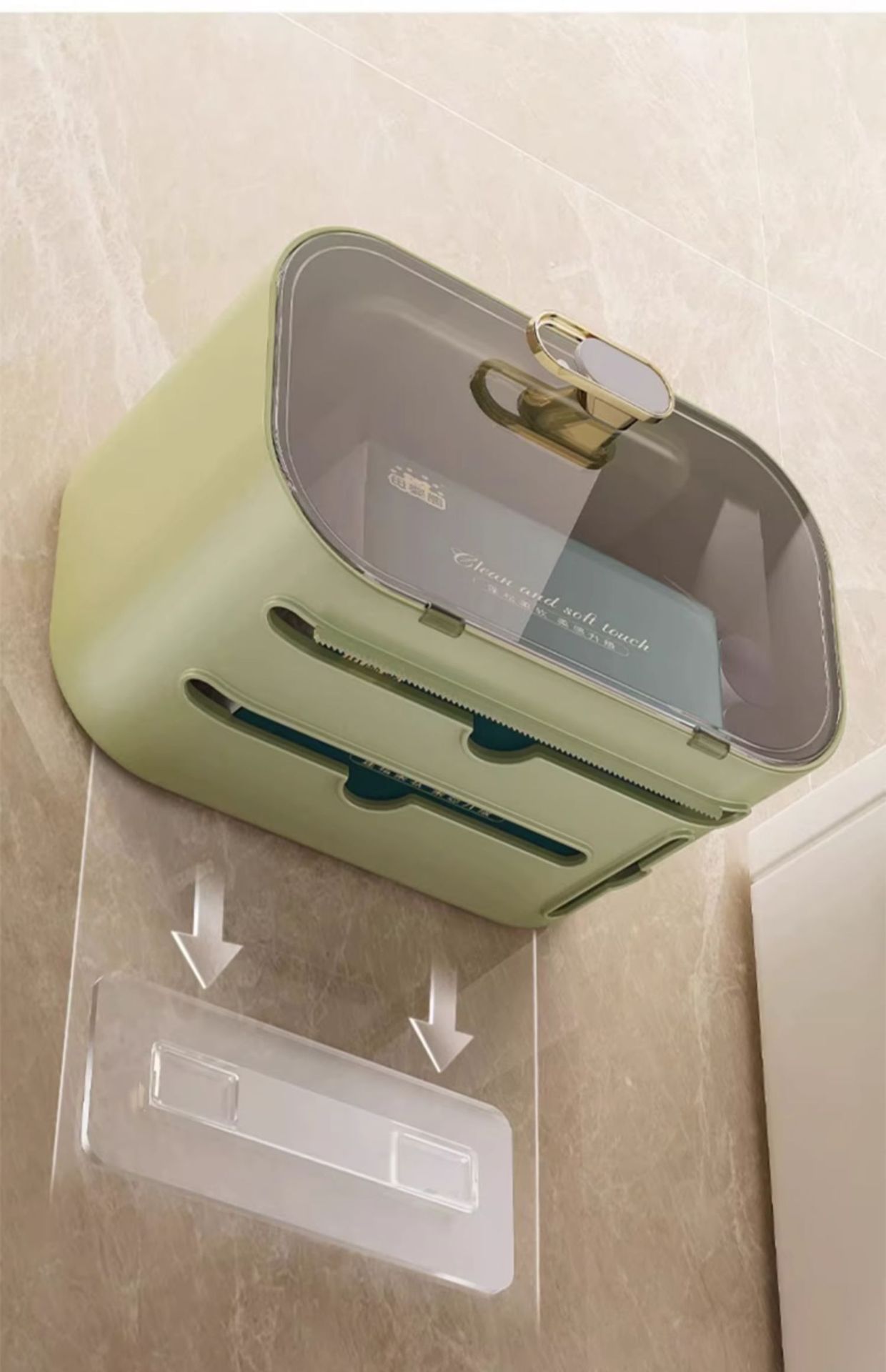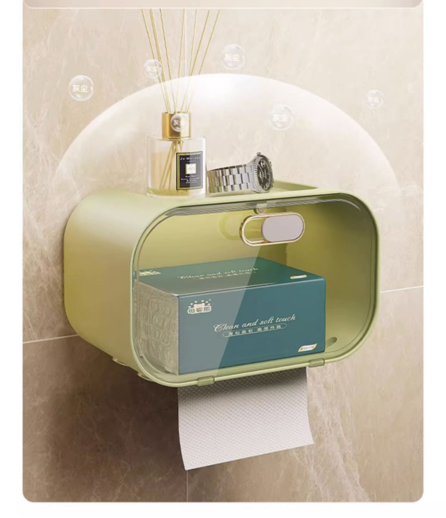 【多功能置物架!壁挂式纸巾盒】卫生间厕所纸巾盒厕纸盒抽纸盒卫生纸置物架卷纸防水壁挂式免打孔,前盖透明 内里一目了然。ry