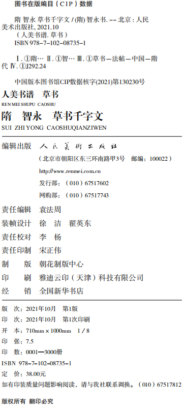 人美书谱 草书 隋 智永 草书千字文【现货包邮】RM0062
