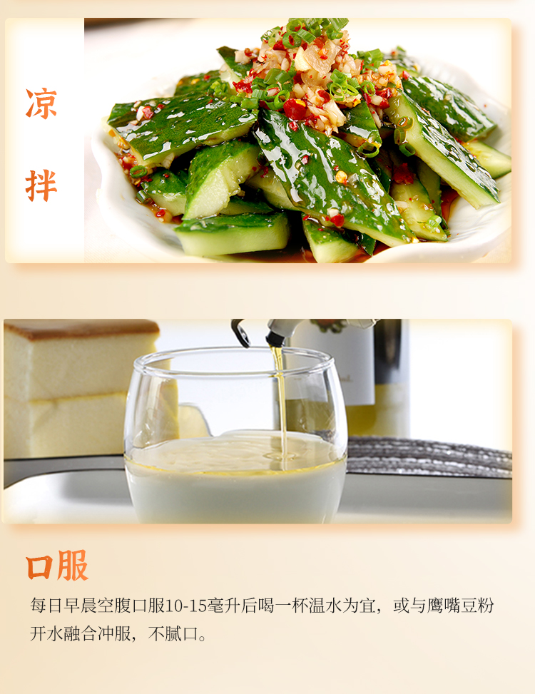 【温馨提示】食用方法:烹饪各种菜肴,可凉拌、煲汤、调味;可直接口服,或与鹰嘴豆粉用开水冲服口感更好