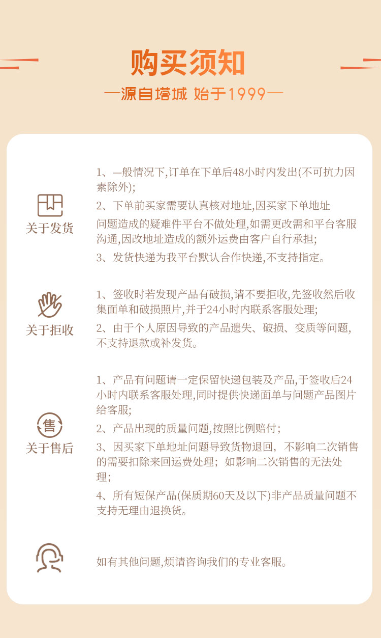 【不发货区域】海南、西藏以及疫情区域不发货,县级以下村镇地址如下单则不保时效,破损不售后