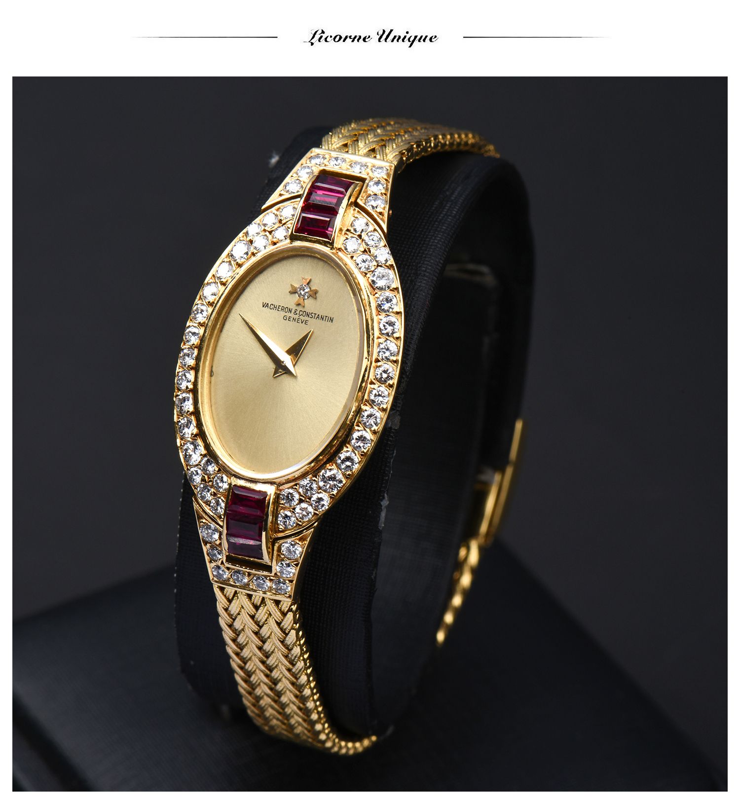 独角鹿西洋古董瑞士钟表世家机械机芯18k金镶嵌红宝石钻石腕表