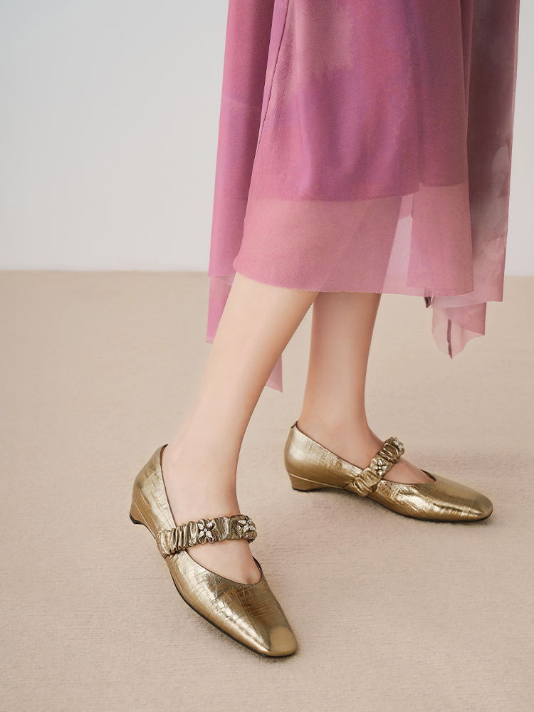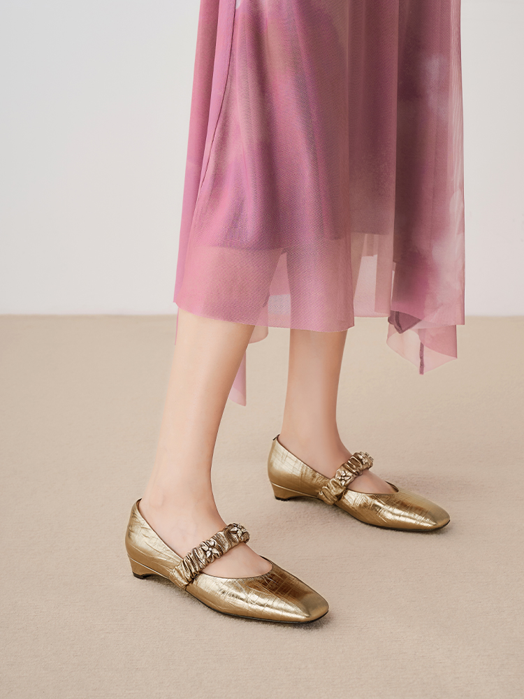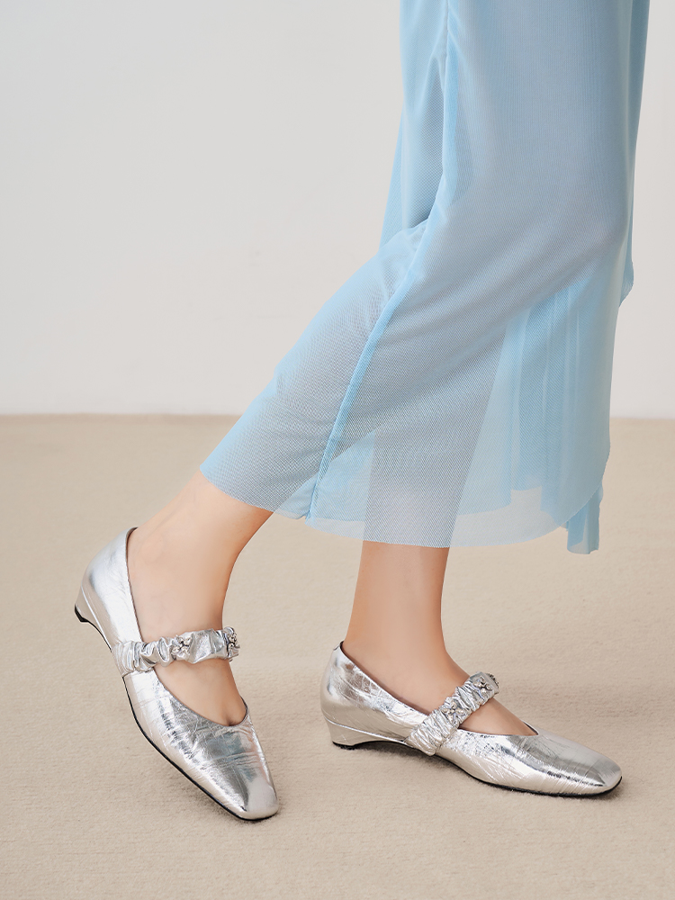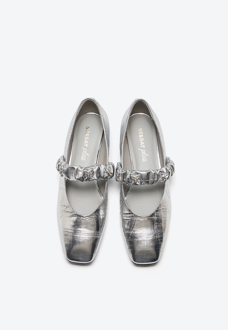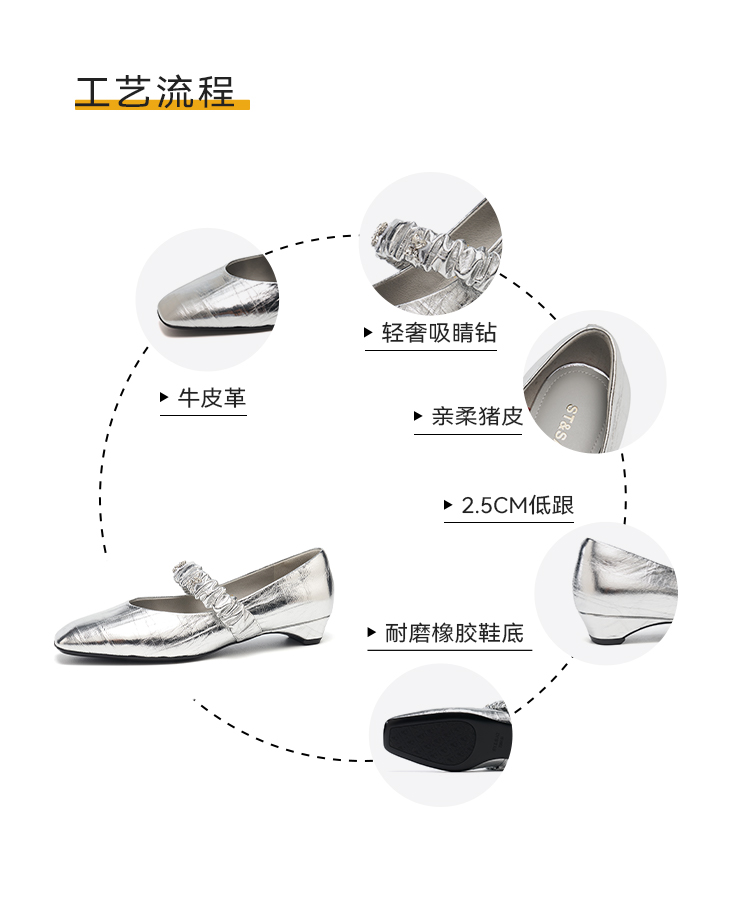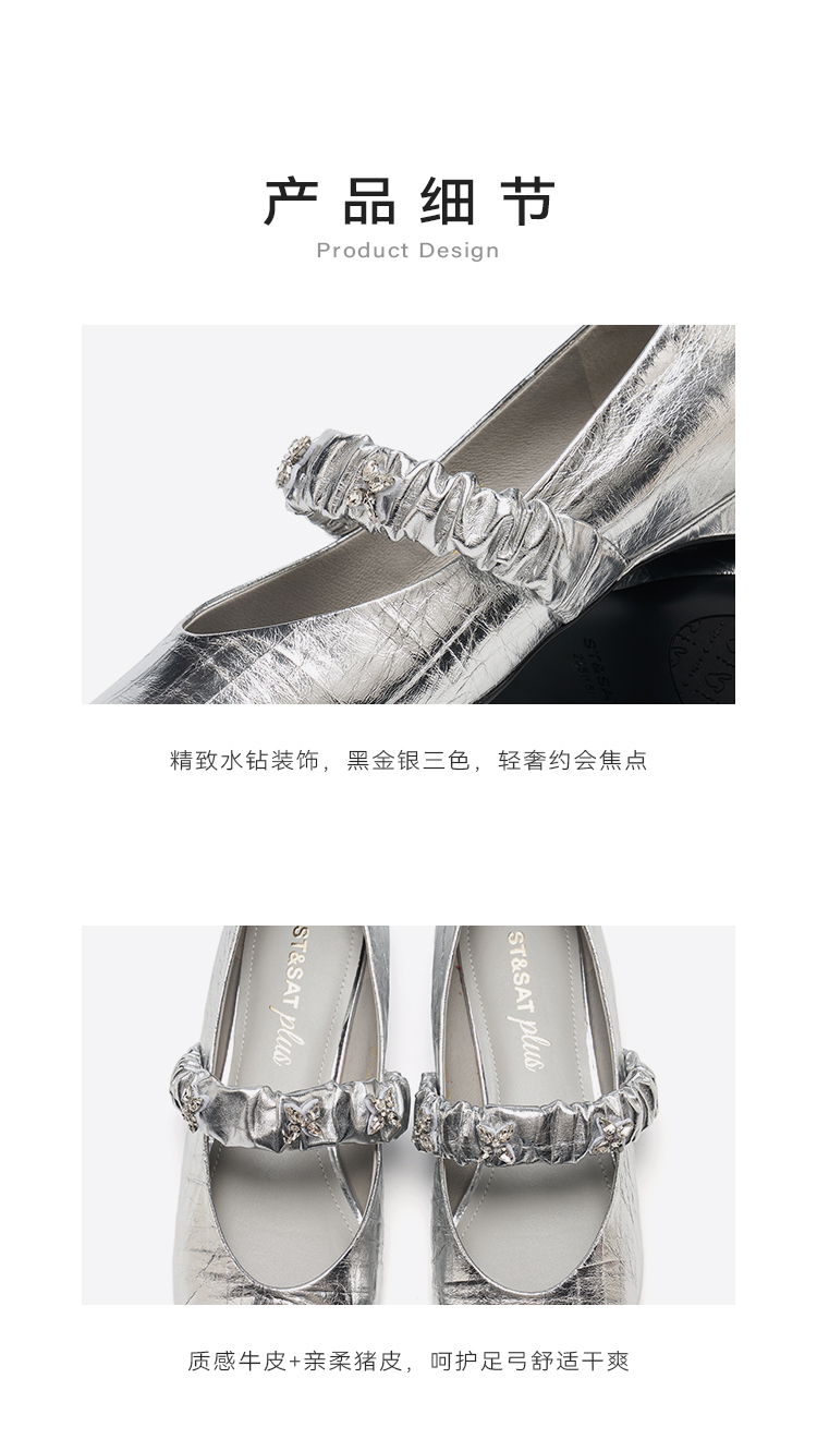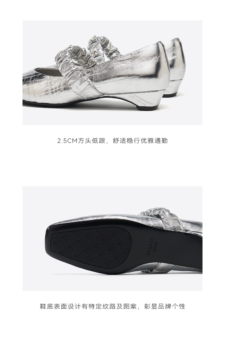 【金属风】星期六水钻褶皱搭扣方头玛丽珍SSD3111087