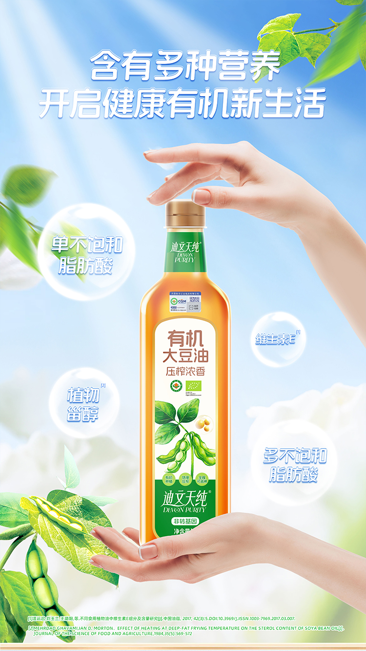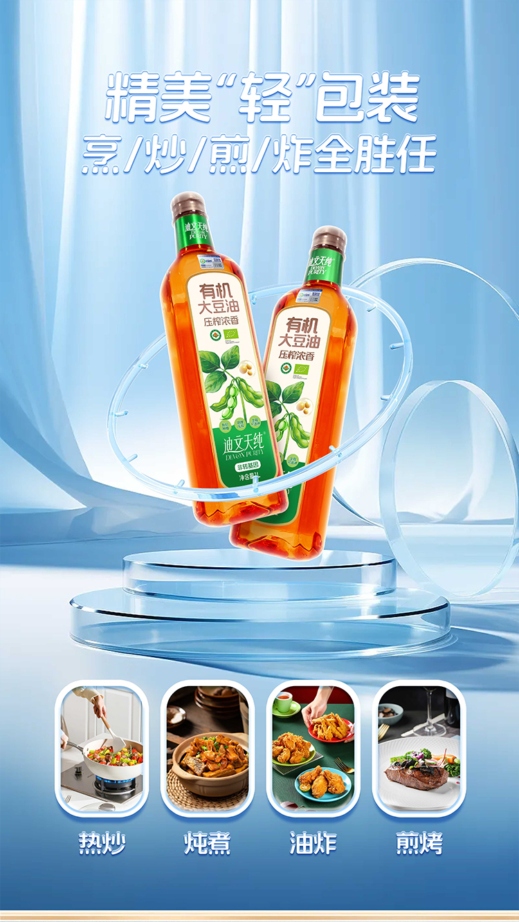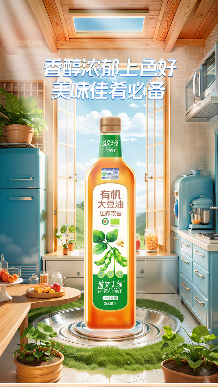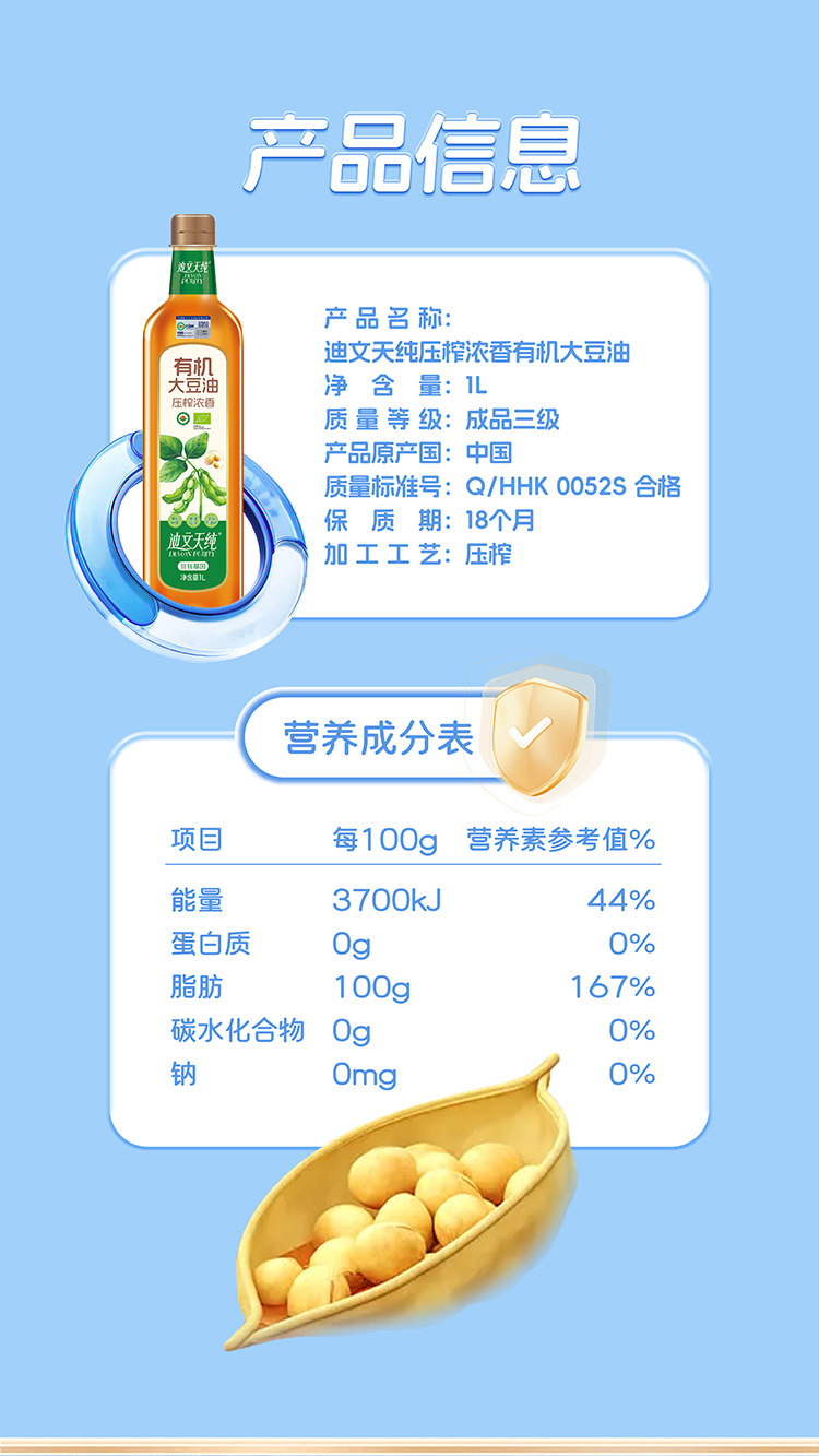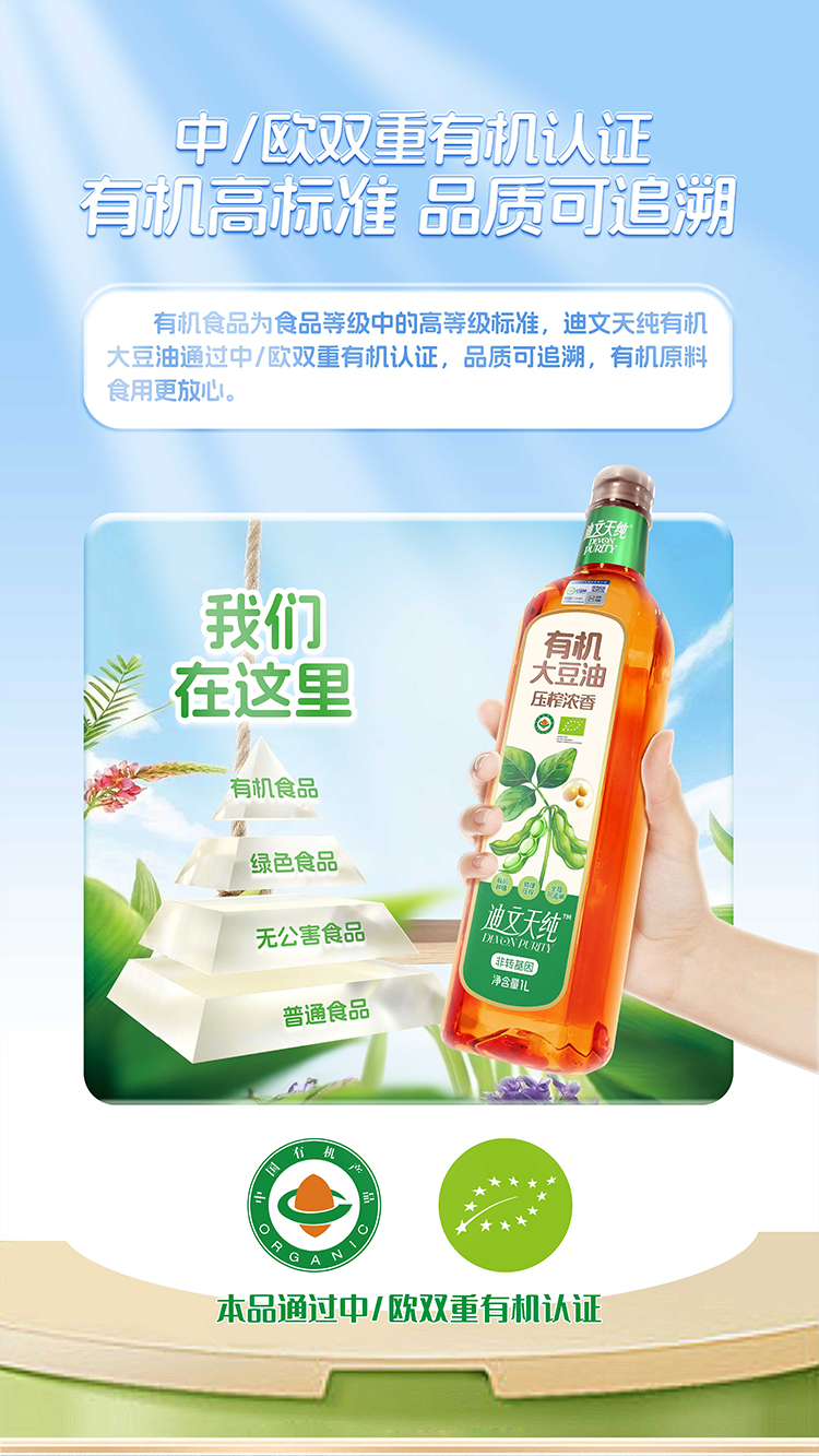 【中国农垦】九三迪文天纯压榨浓香有机大豆油1L
