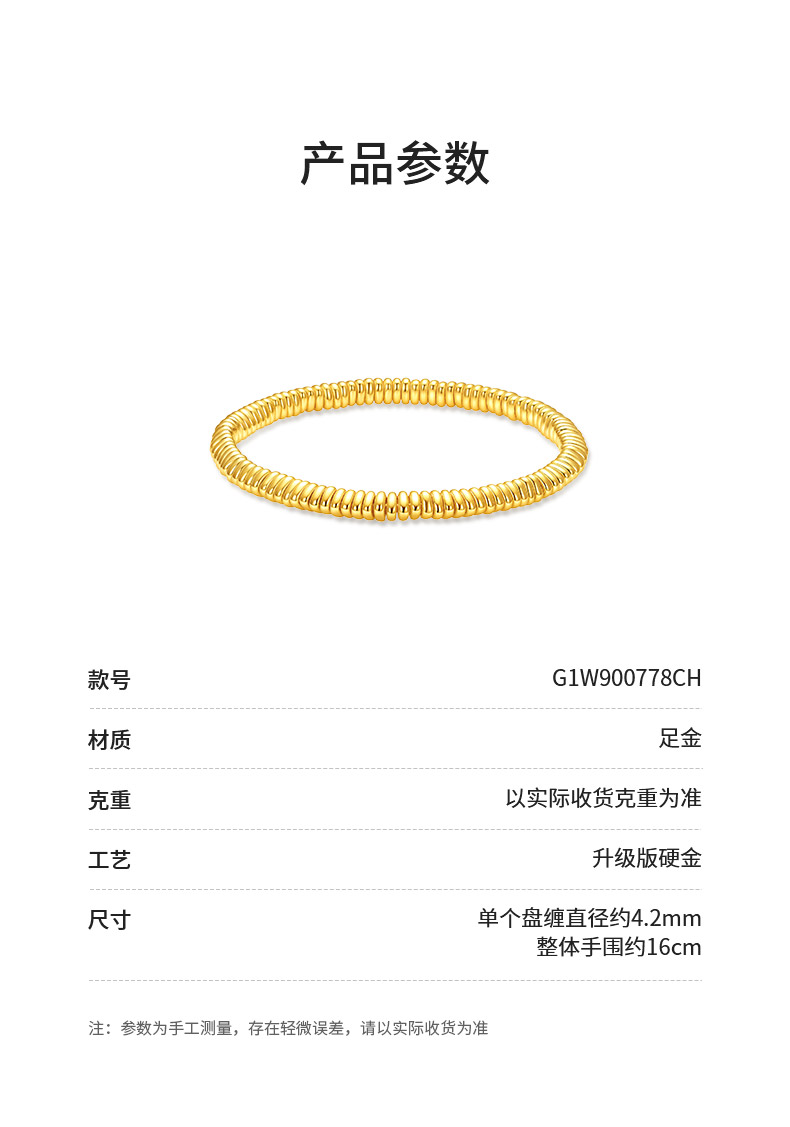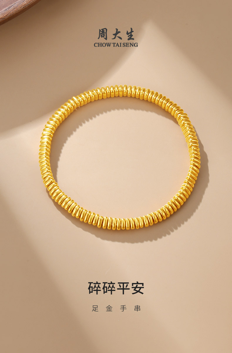 周大生盘缠黄金手链女款足金硬金5D碎碎金子手串送女朋友生日礼物