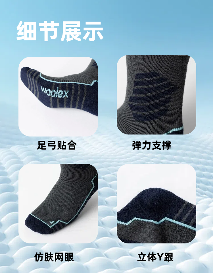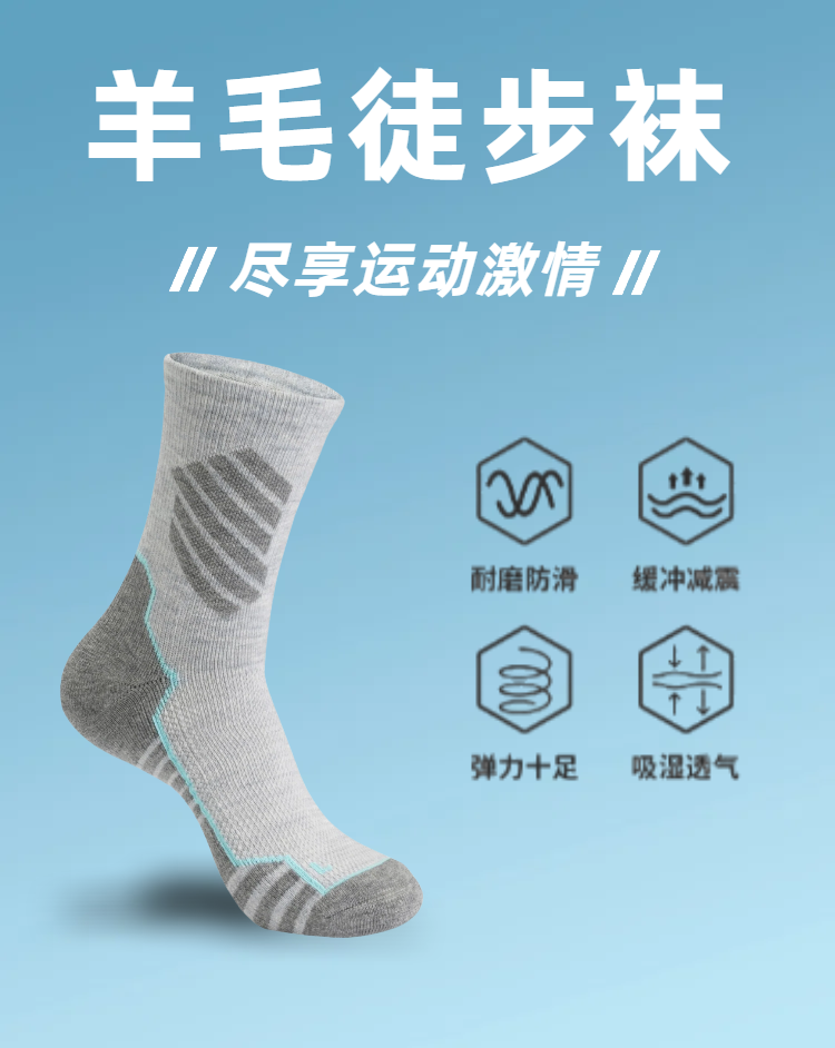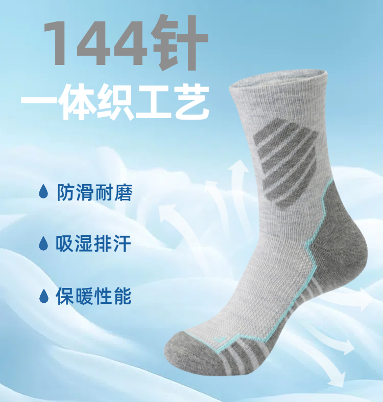 Taketop 男女款羊毛高筒徒步袜2双装35%美丽奴羊毛7A抗菌144针一体织