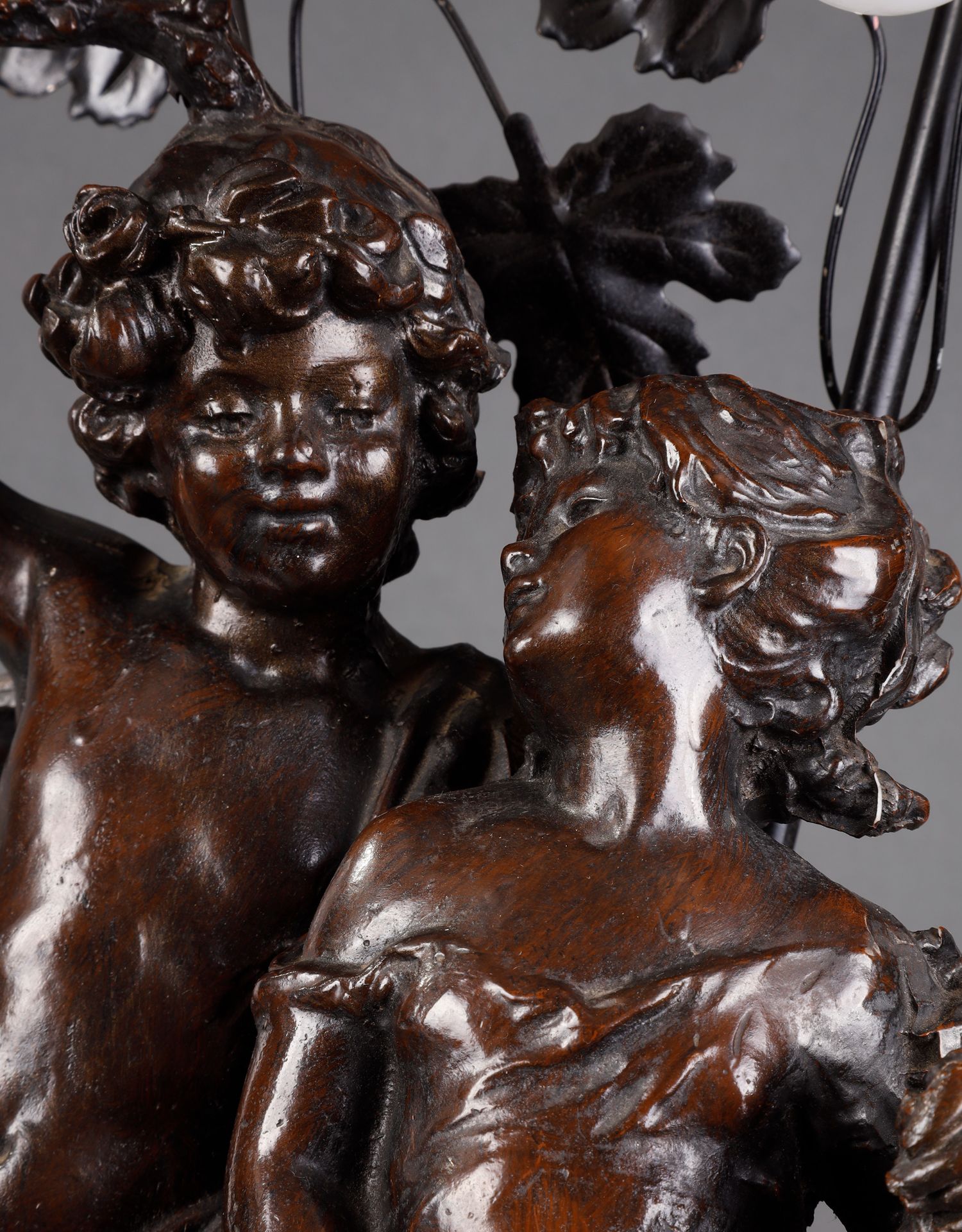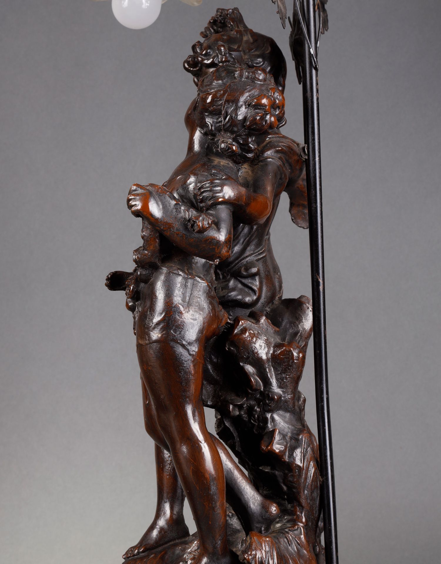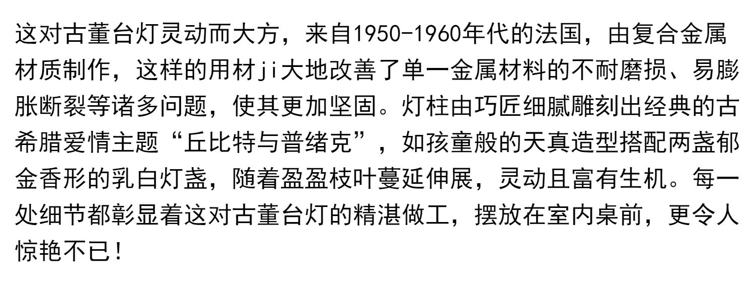 独角鹿西洋古董丘比特与普绪克主题复合金属材质雕塑古董台灯一对