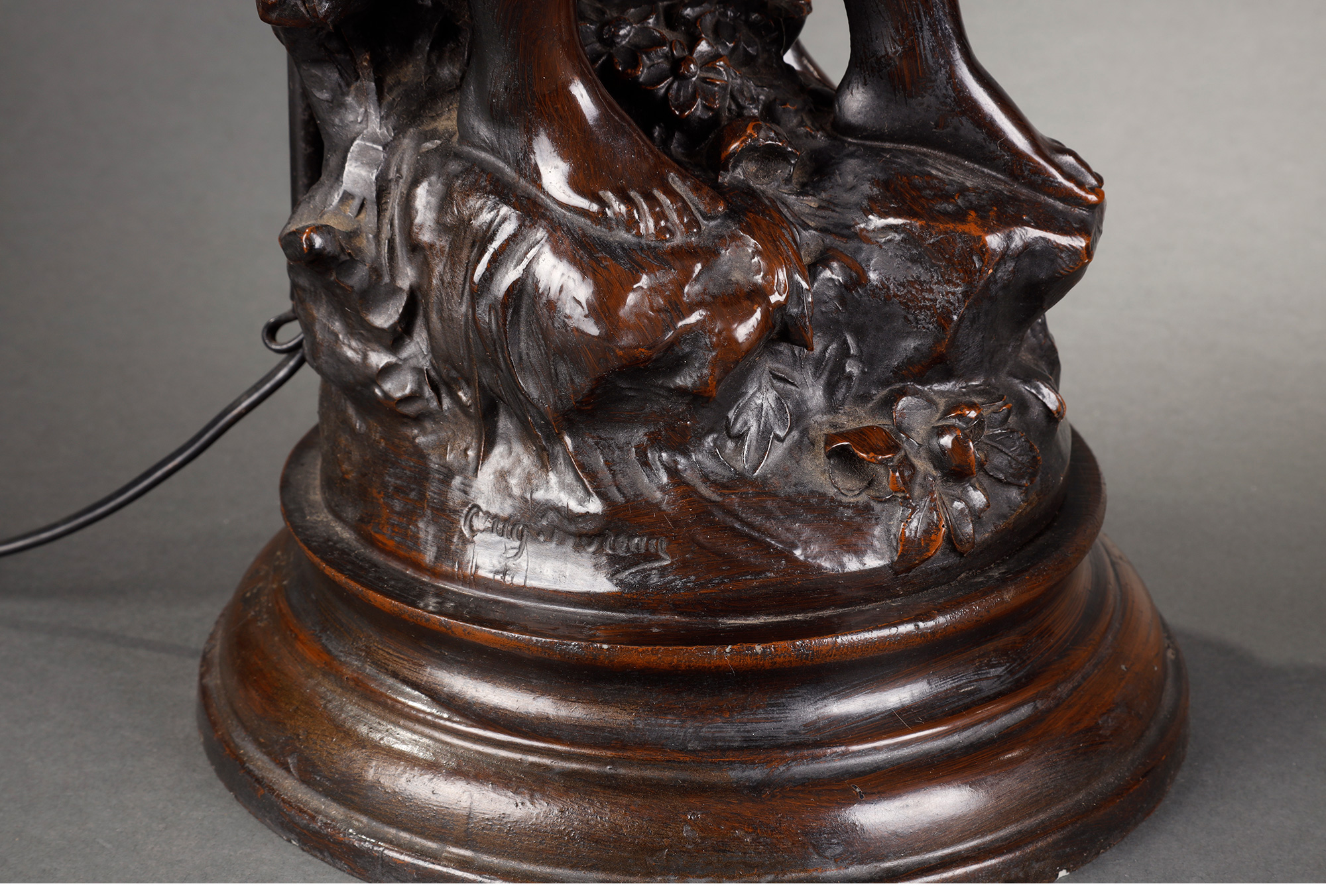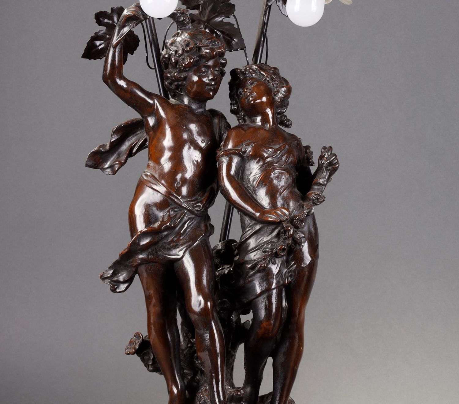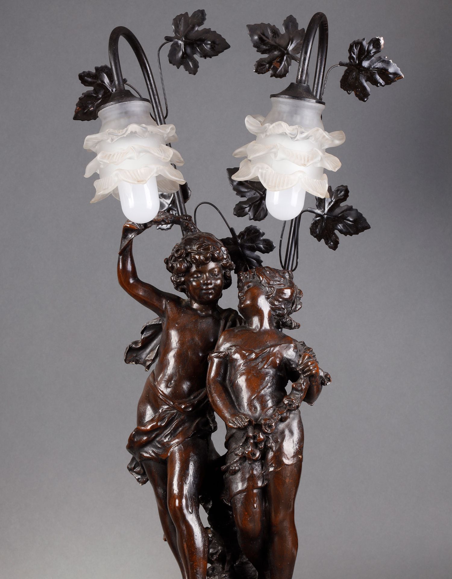 独角鹿西洋古董丘比特与普绪克主题复合金属材质雕塑古董台灯一对