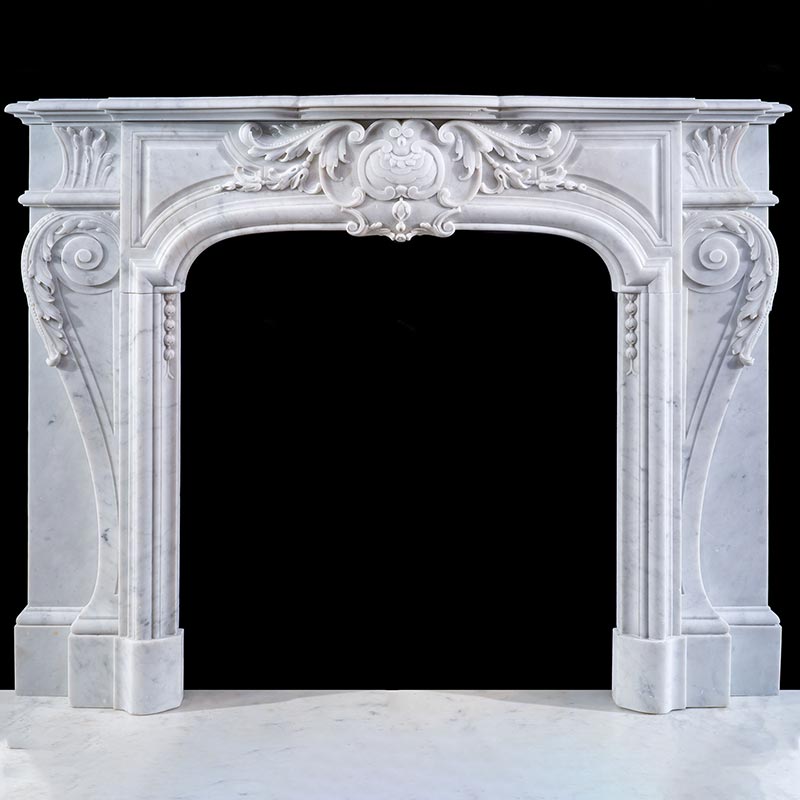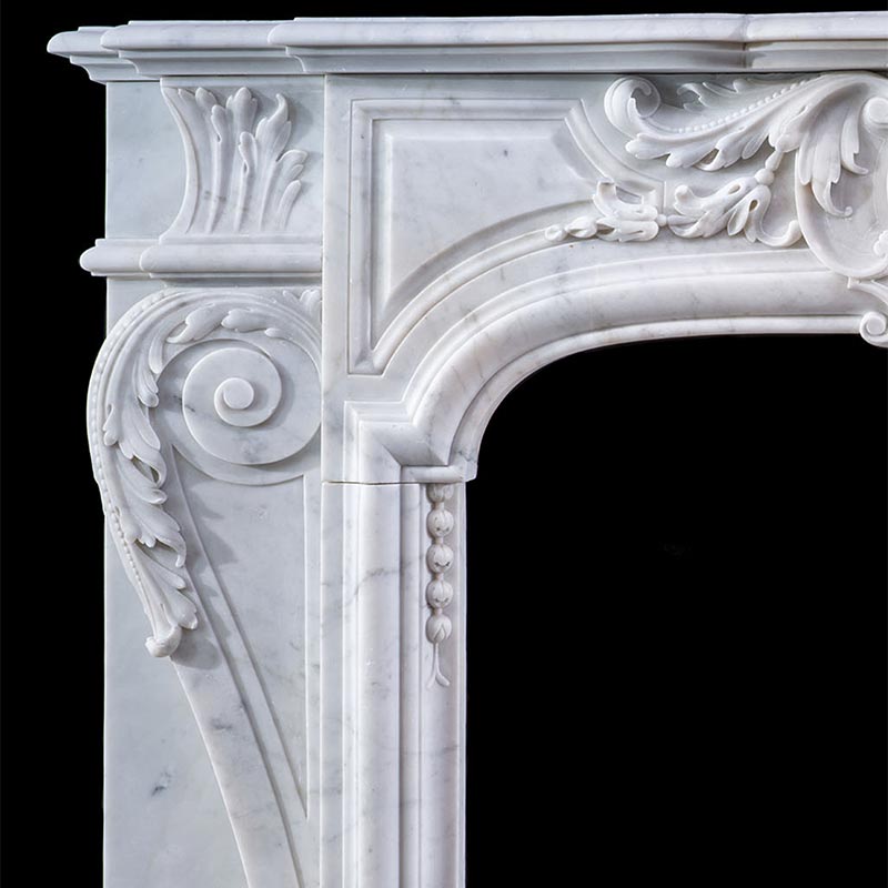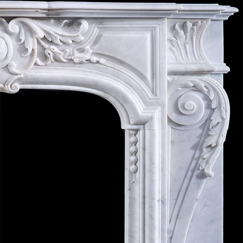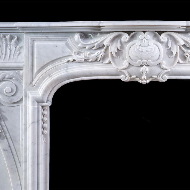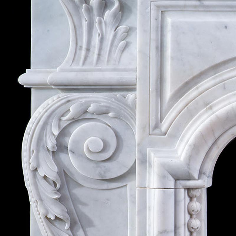 1800年代比利时出品古典卷叶纹主题浮雕装饰卡拉拉大理石壁炉