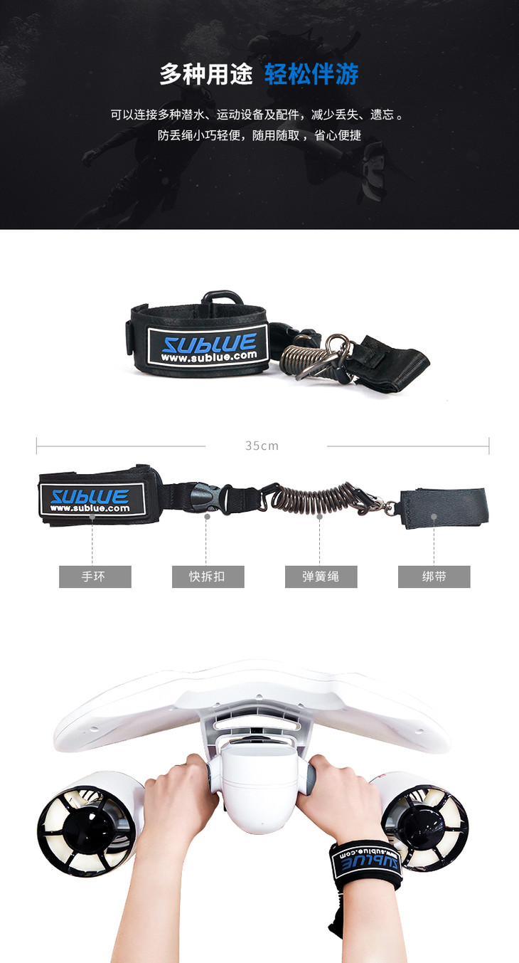Sublue潜水配件弹簧绳伸缩绳潜水相机潜水灯挂绳挂钩防丢绳