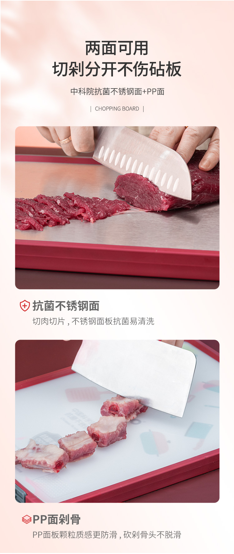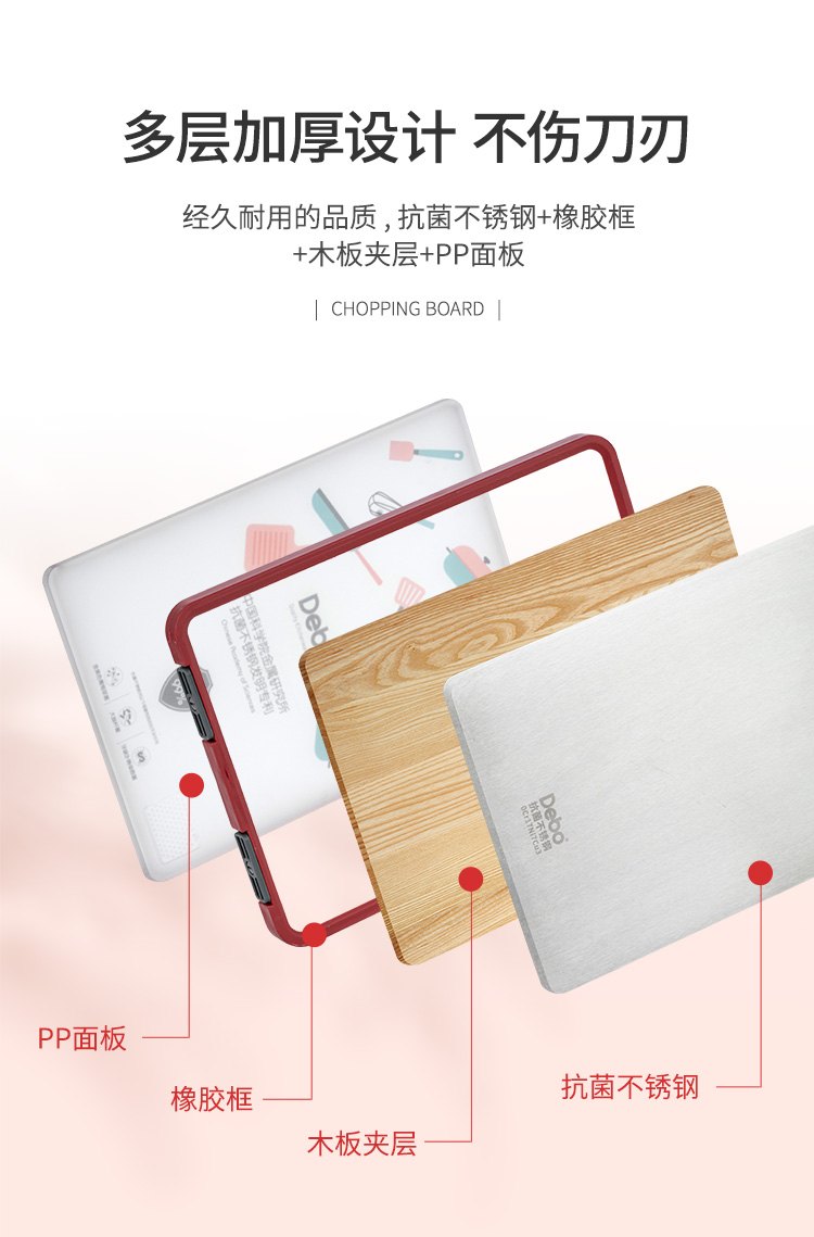 Debo德铂库尼特抗菌不锈钢PP双面可立多用菜板