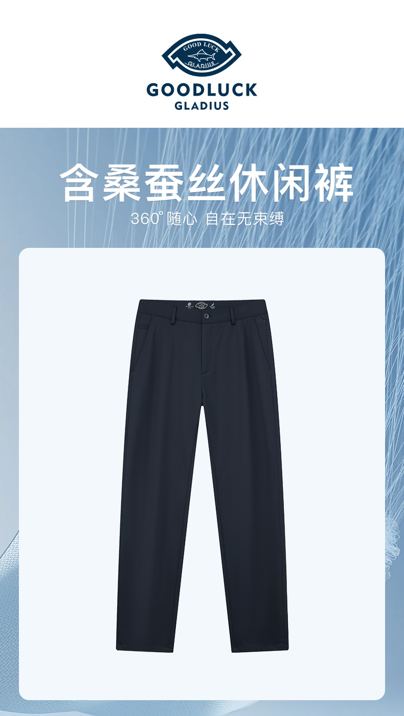 【桑蚕丝】德鲨鲨鱼男士休闲裤2026夏新款直筒百搭裤子男