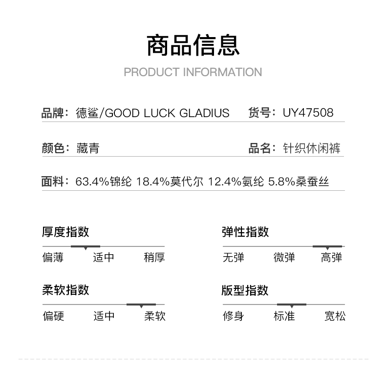 GOOD LUCK GLADIUS品牌由“浙江德鲨服饰有限公司”引进中国市场,经过多年发展,凭借完善的终端形象,规范化的销售管理,迅速赢得消费者的认可,引领国内消费流行,是成功人士首选男装品牌。