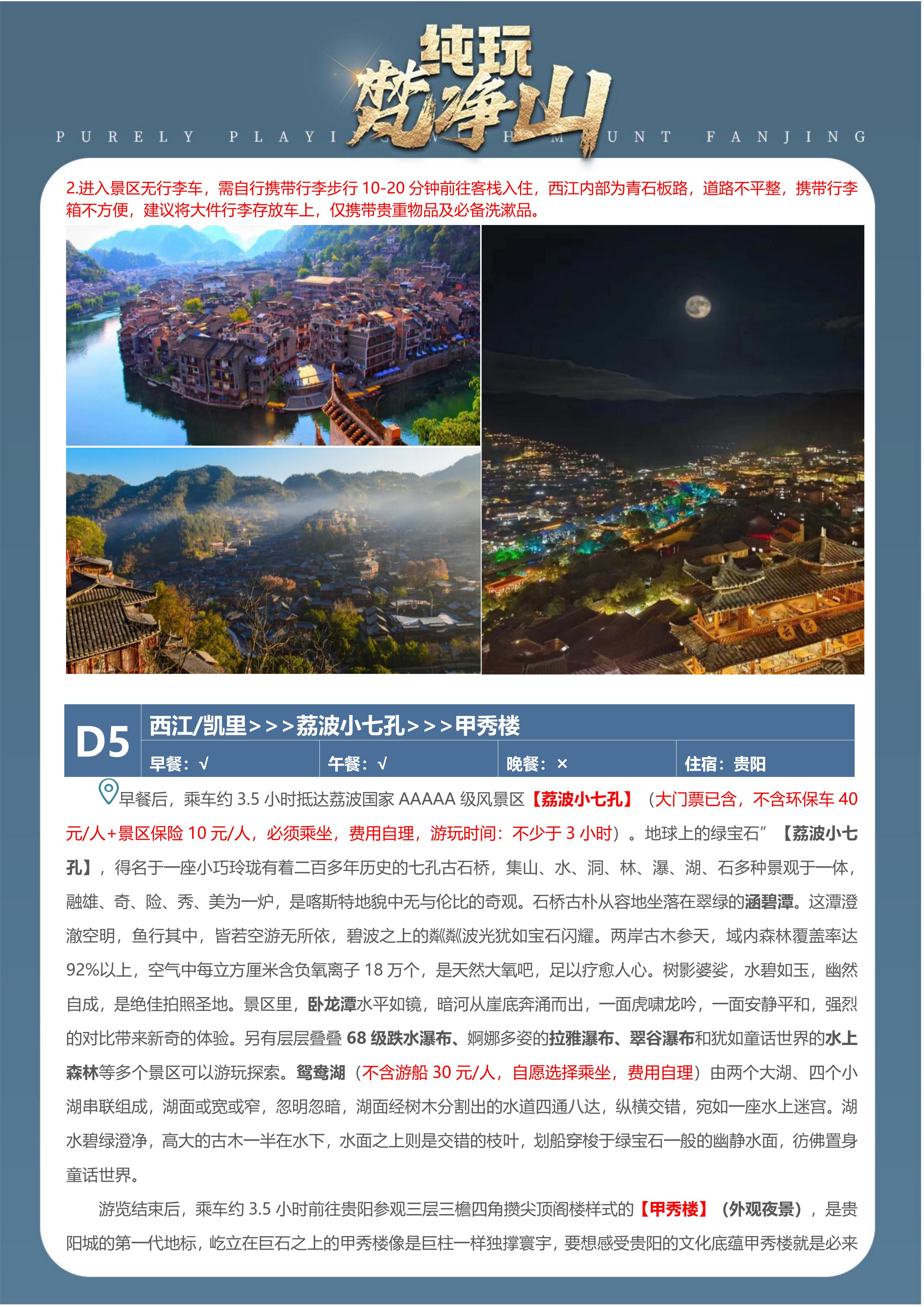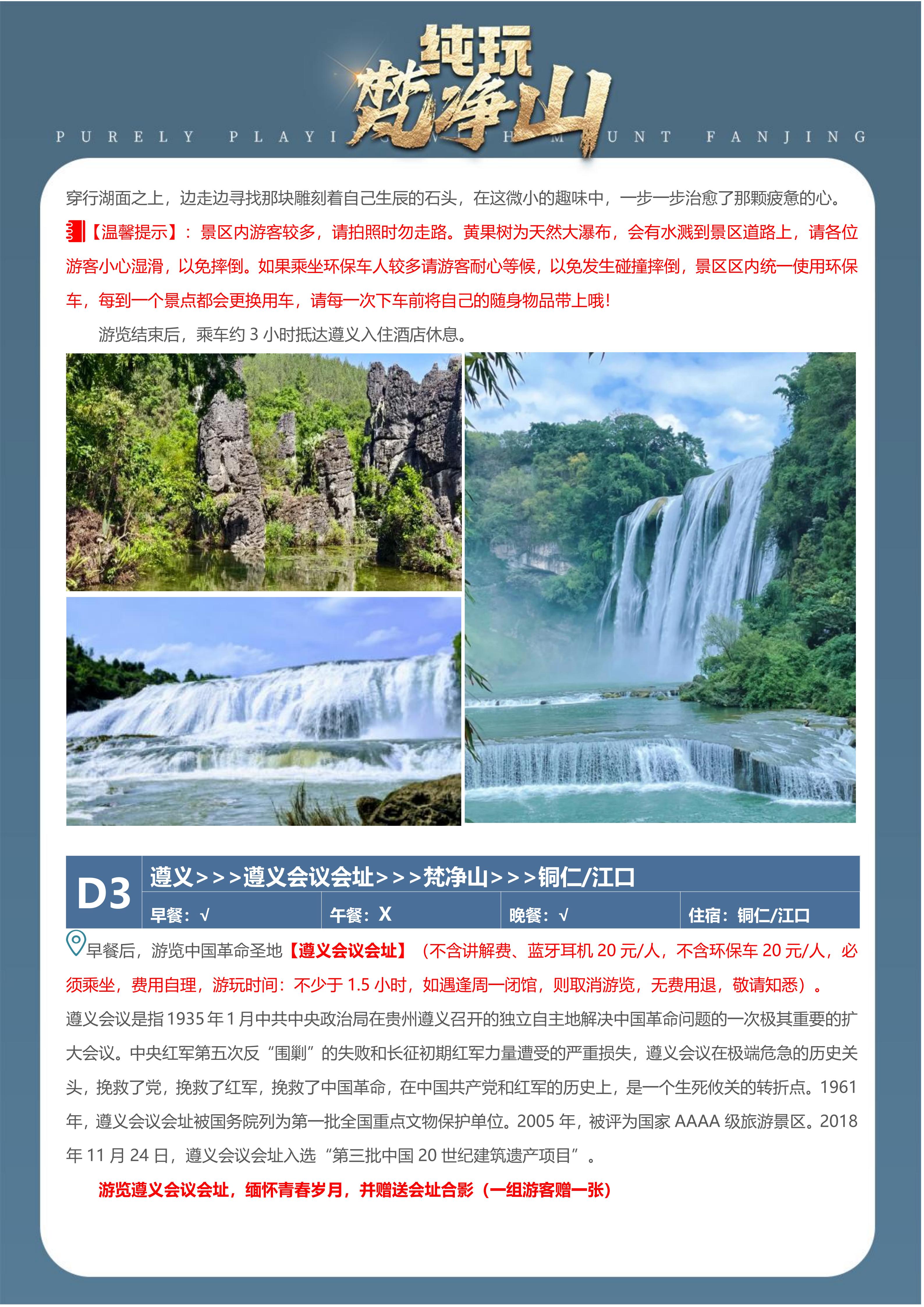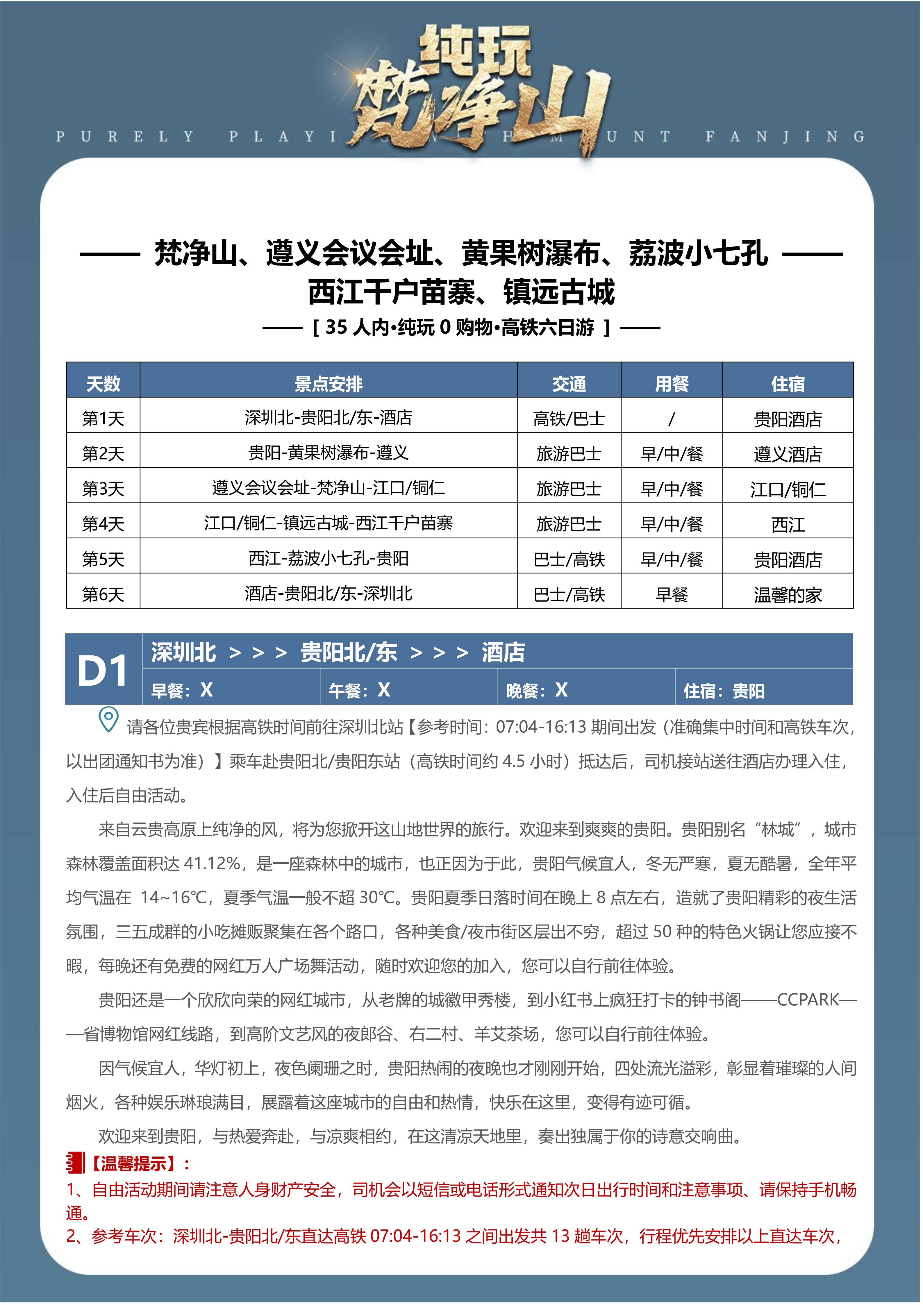 <贵州6天5晚高铁团>梵净山、遵义会议会址、黄果树瀑布、荔波小七孔、西江千户苗寨、镇远古城