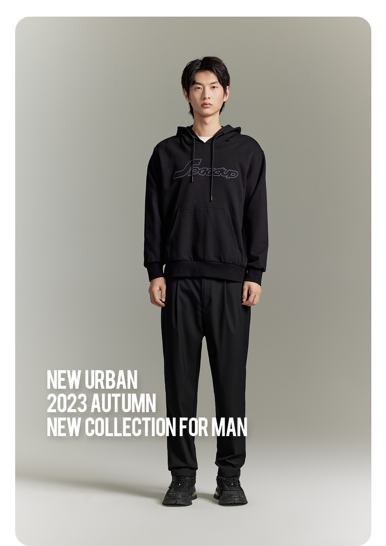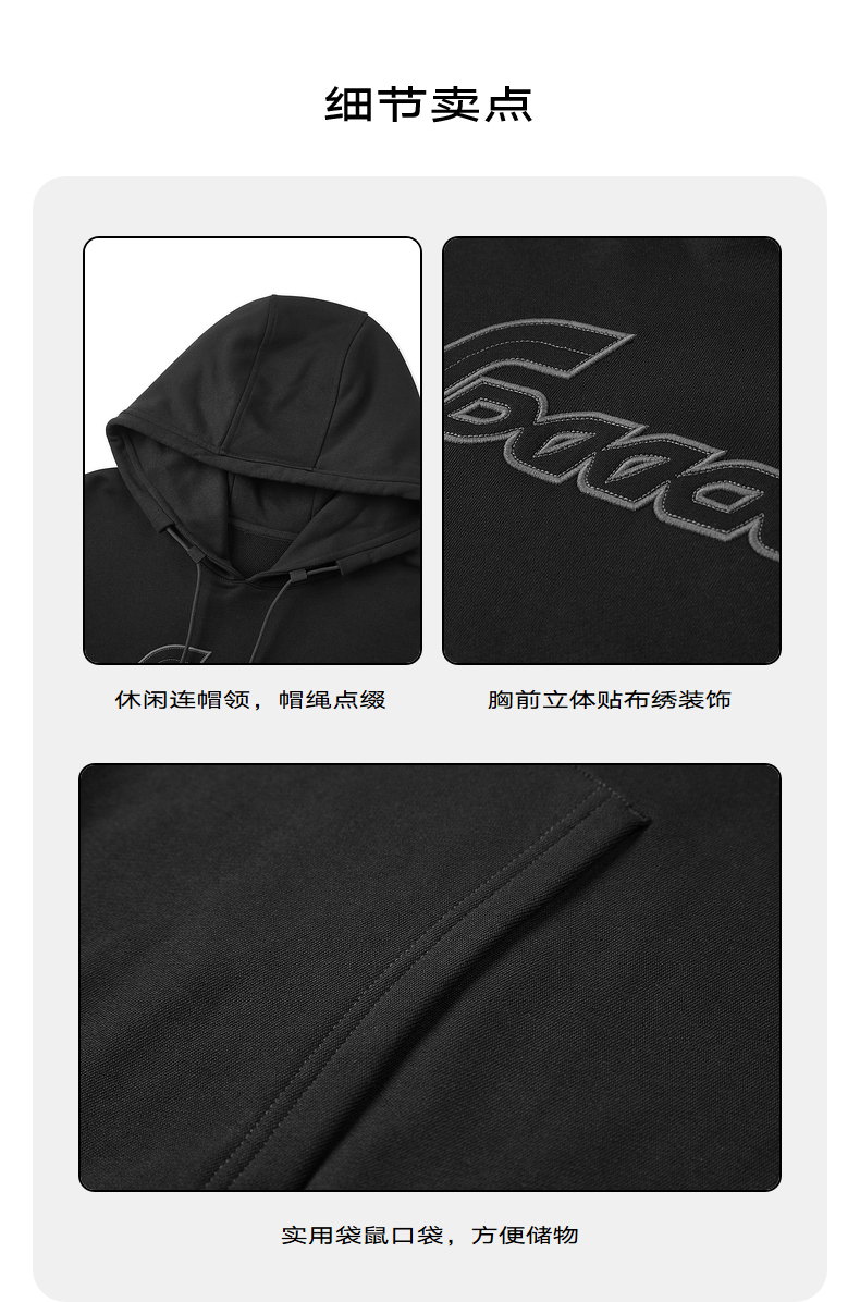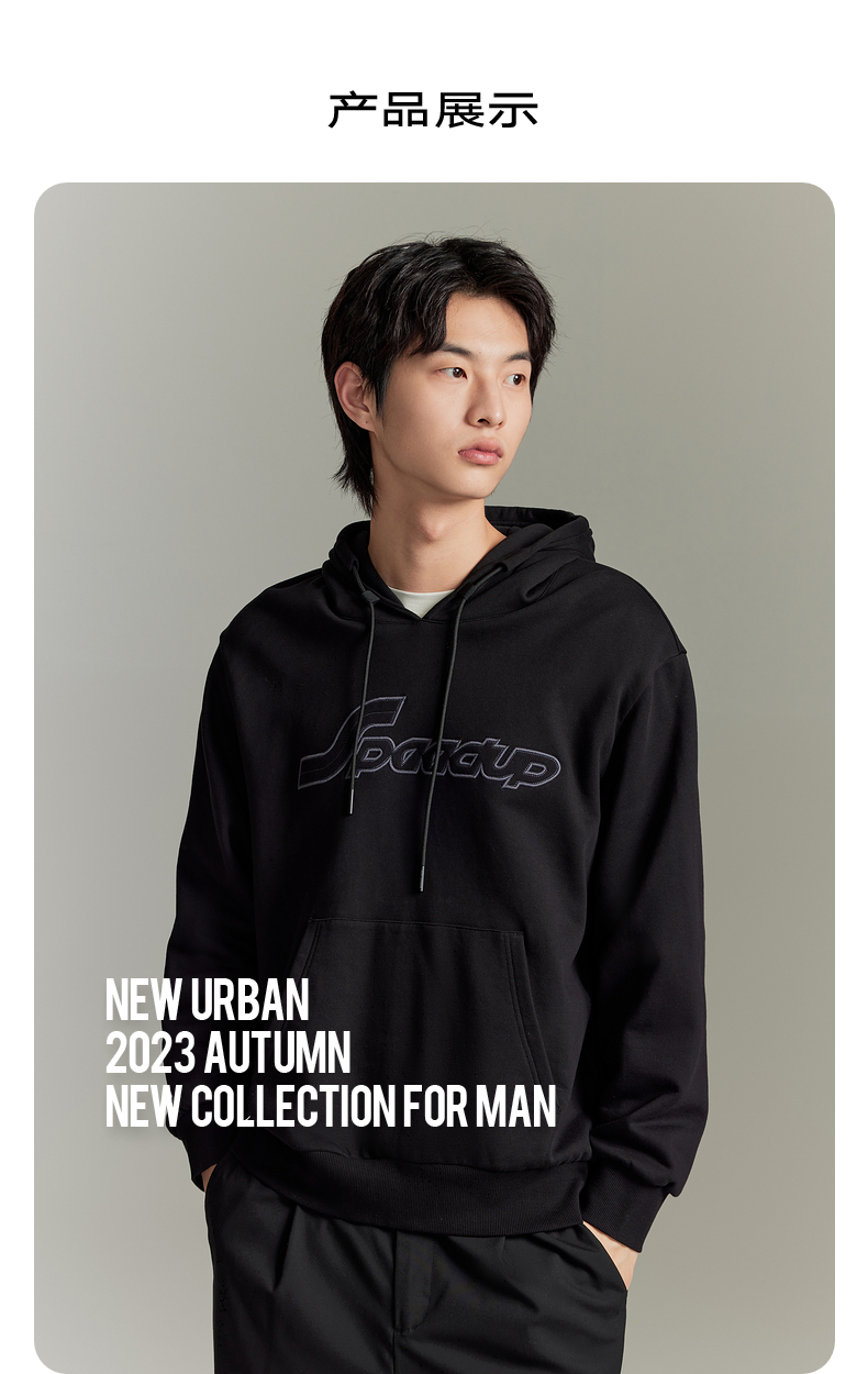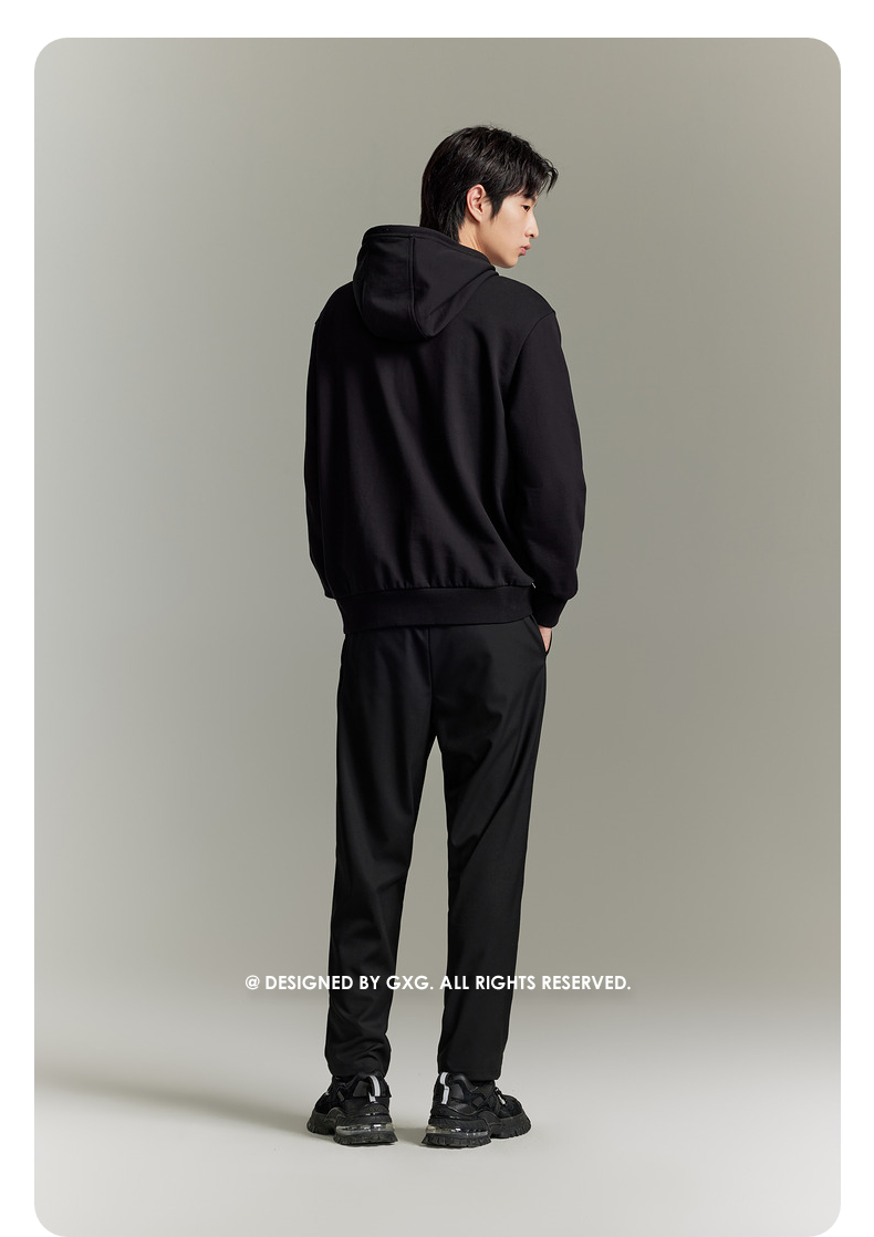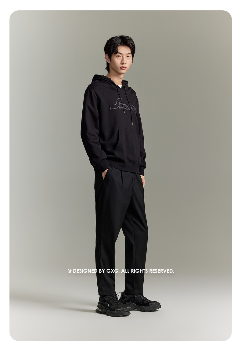 GXG男装黑色贴布绣花易打理连帽卫衣休闲时尚卫衣GEX13114573
