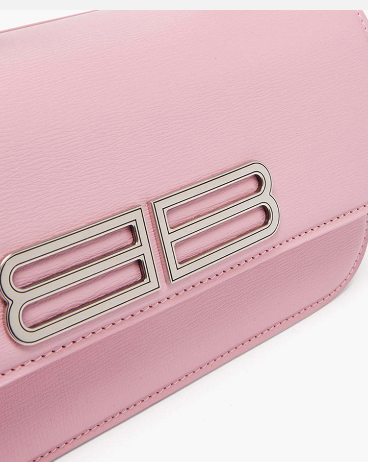 BALENCIAGA 巴黎世家 女士条纹压花小牛皮 BB金属徽标单肩包 粉色 674693 2101Q 5906