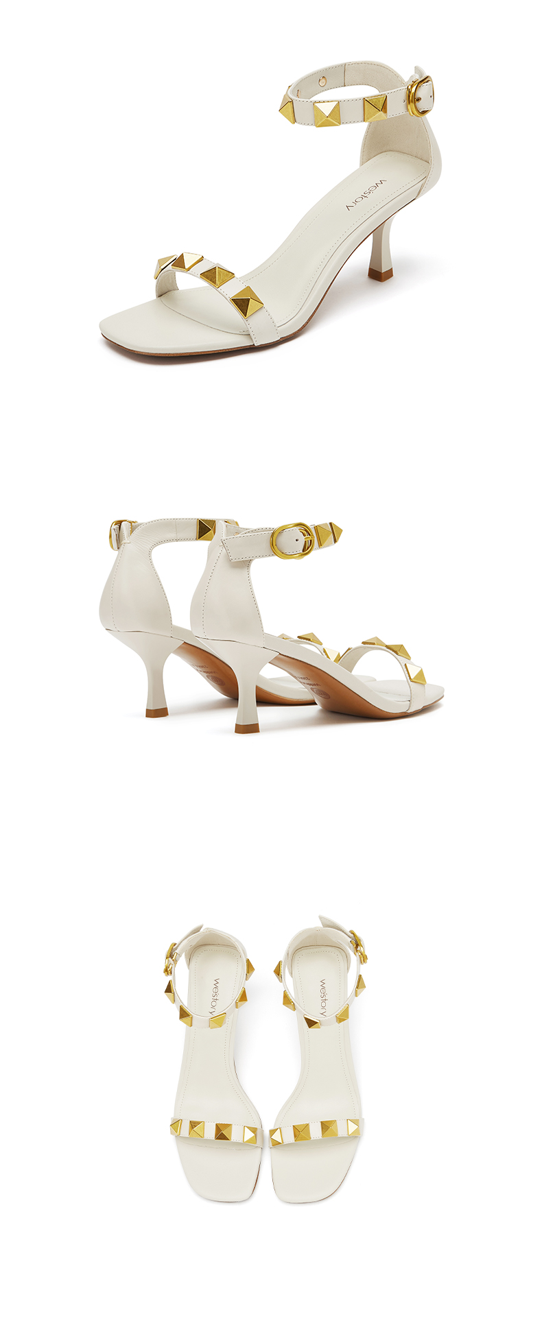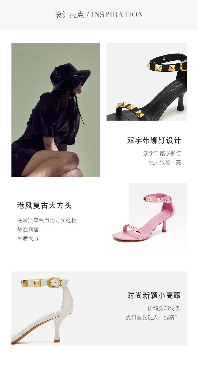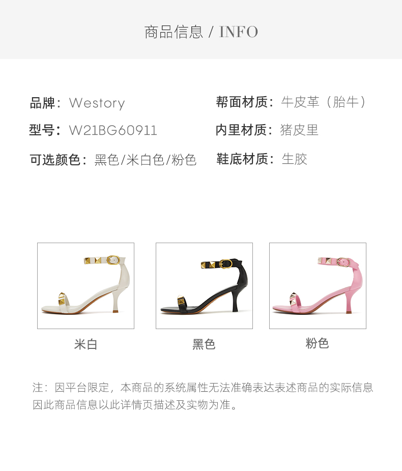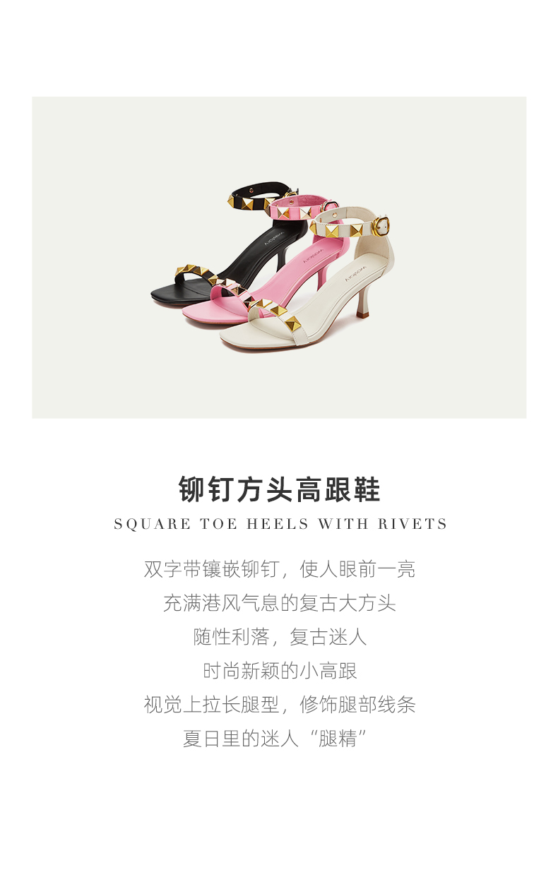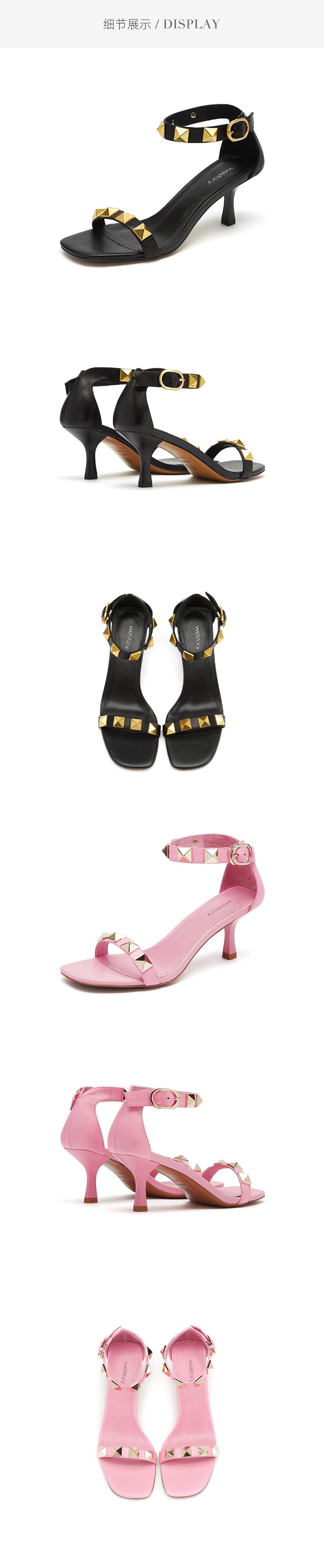 westory女鞋2021夏季新款漆皮铆钉小猫跟一字带凉鞋W21BG60911