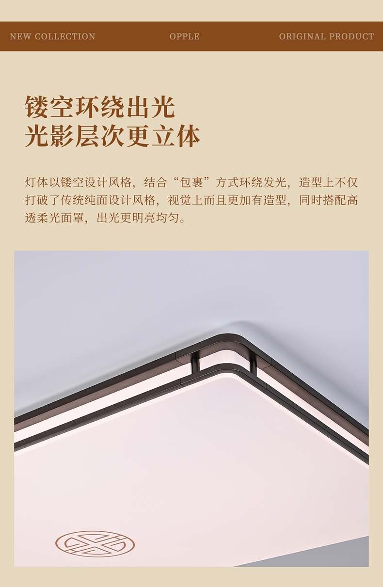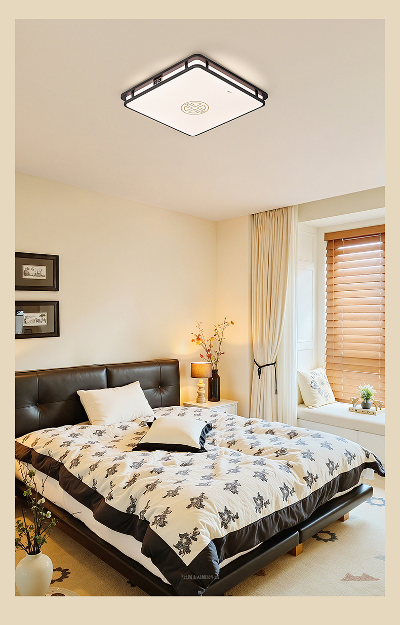 欧普(OPPLE)品瑞卧室方形中古风新中式吸顶灯