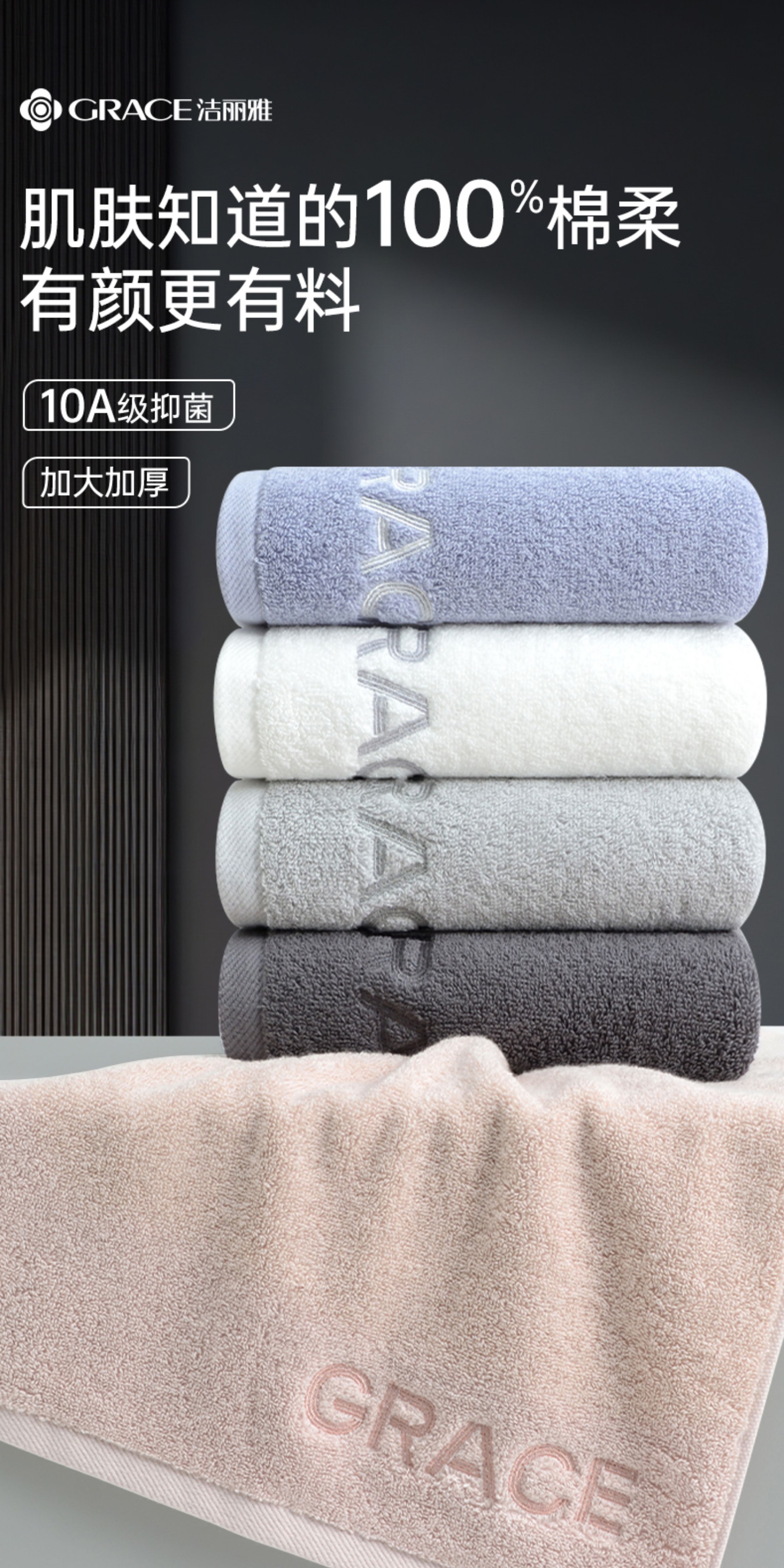 洁丽雅10A抑菌毛巾纯棉洗脸家用女洗澡加厚全棉吸水2025新款4条