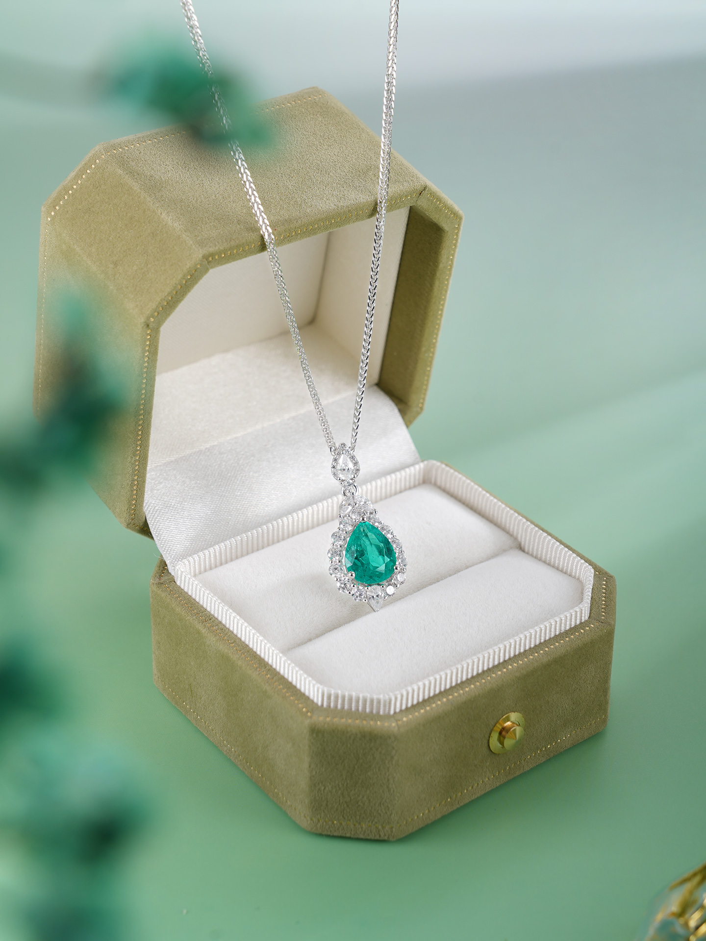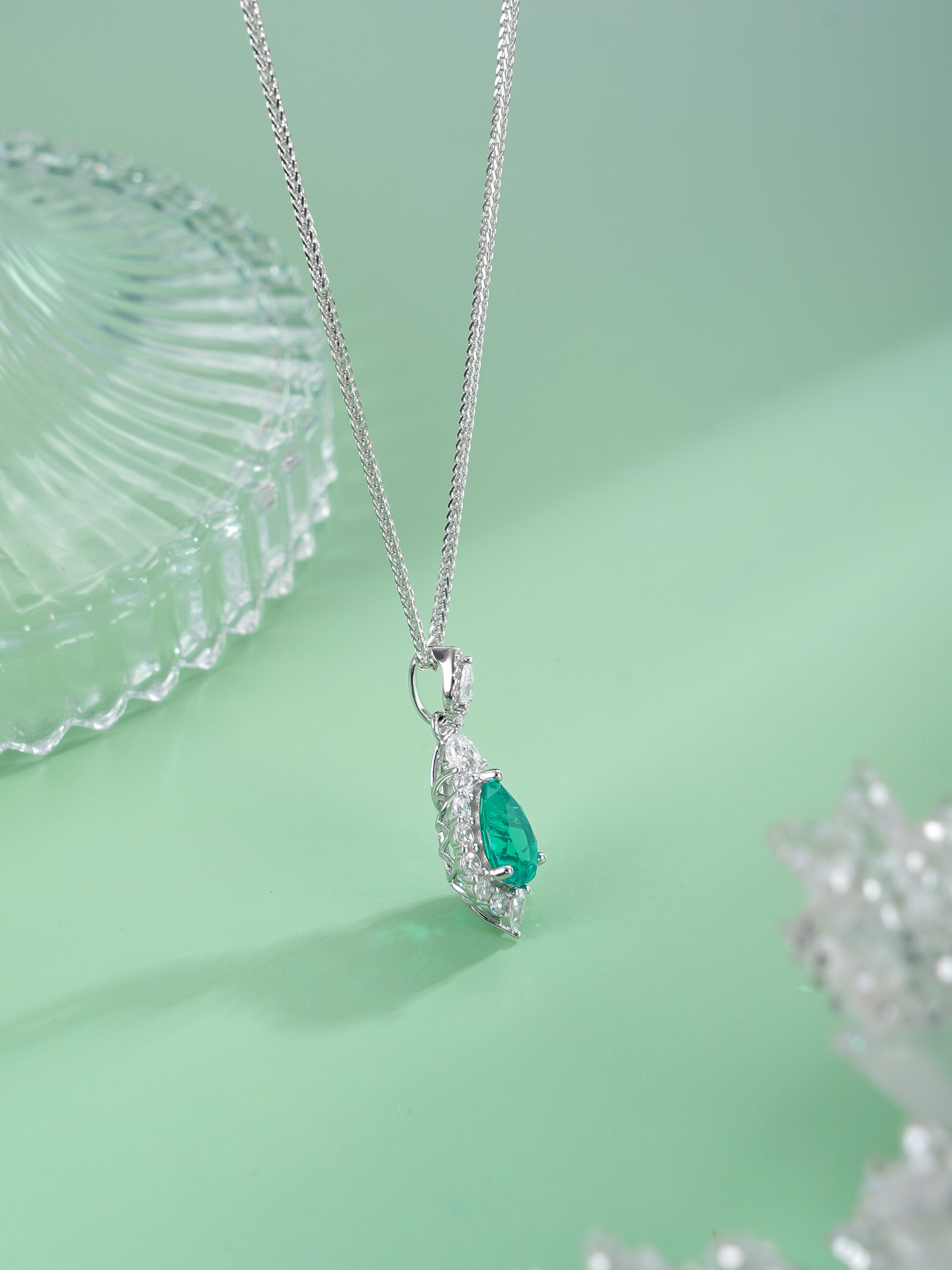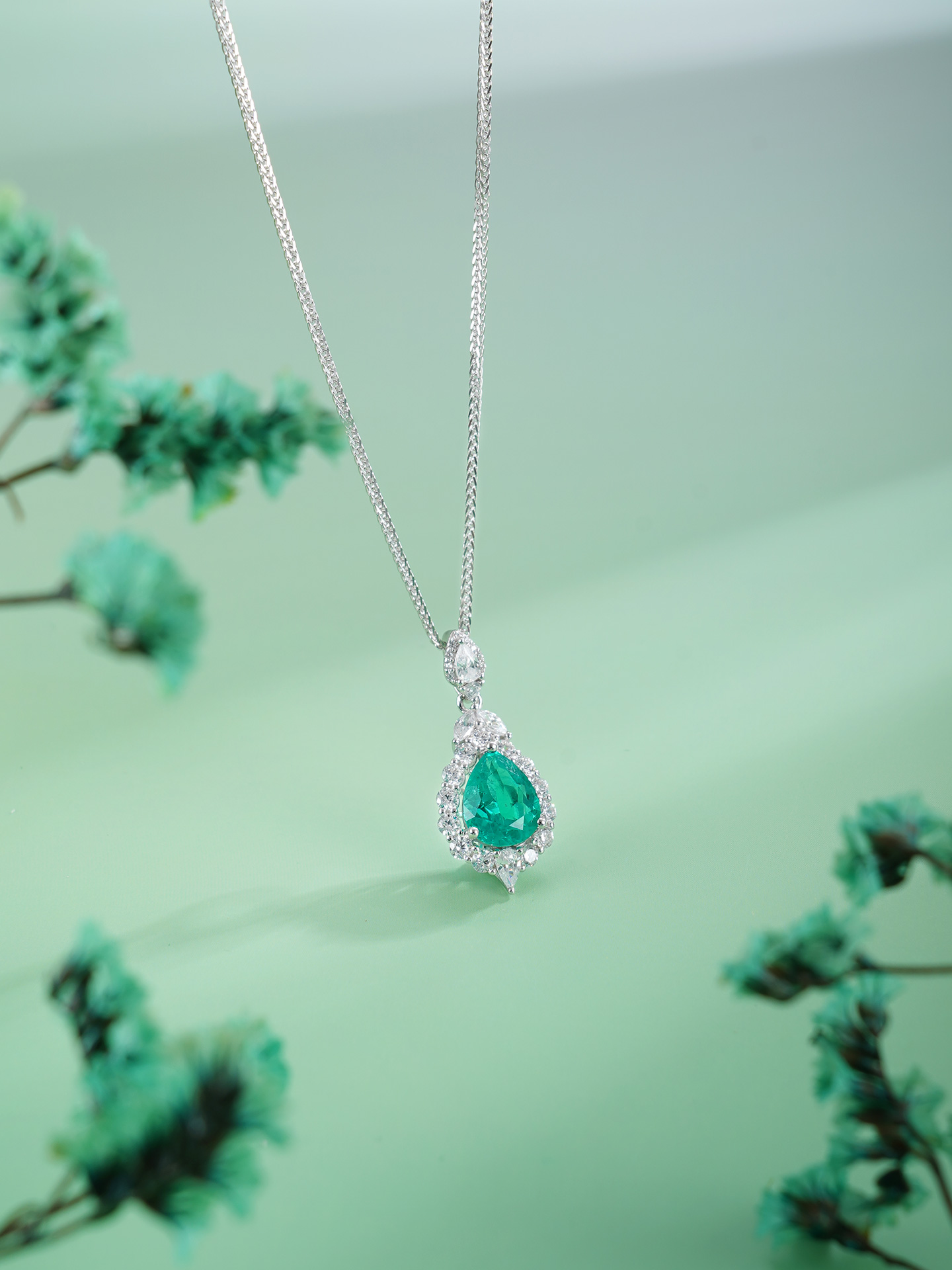 【寓意】:水滴绿宝石吊坠,搭配微镶设计,泛起涟漪状光晕,取名“翠意繁花”,象征日日晴澜,笑对生活。