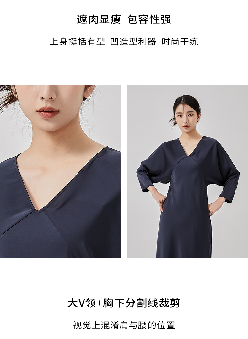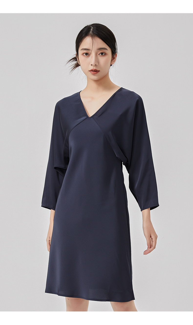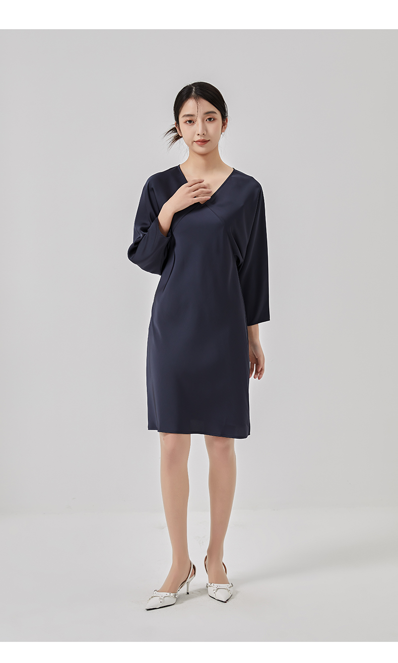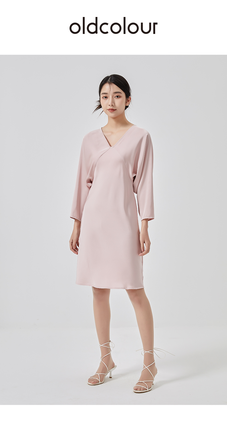 oldcolour2023春新款高级V领显瘦七分袖中长款连衣裙女HO14103441