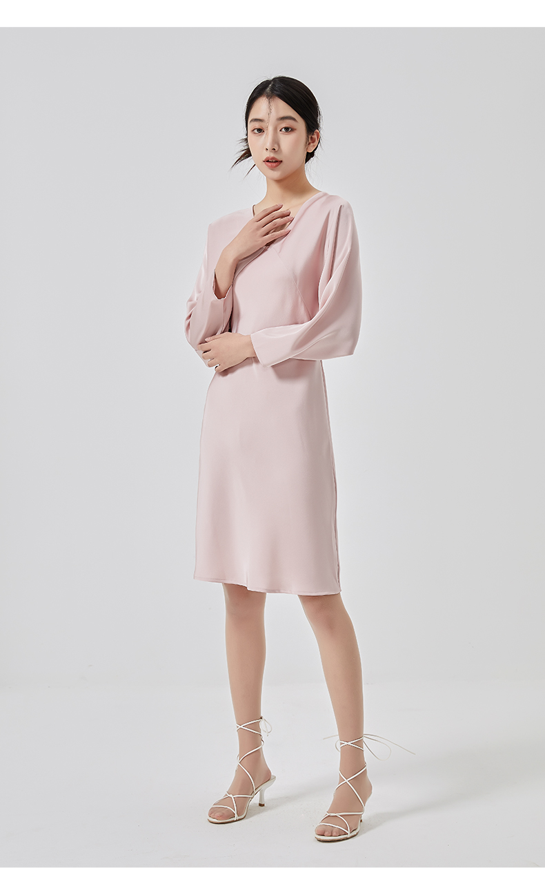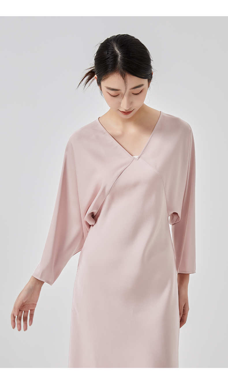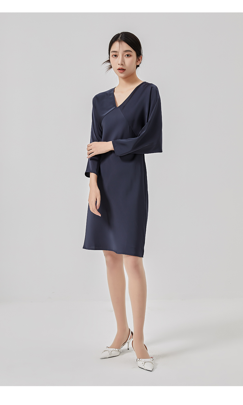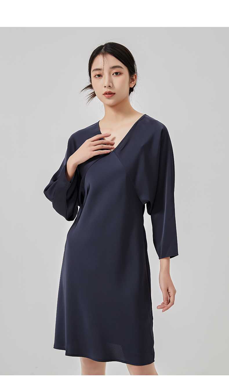 oldcolour2023春新款高级V领显瘦七分袖中长款连衣裙女HO14103441